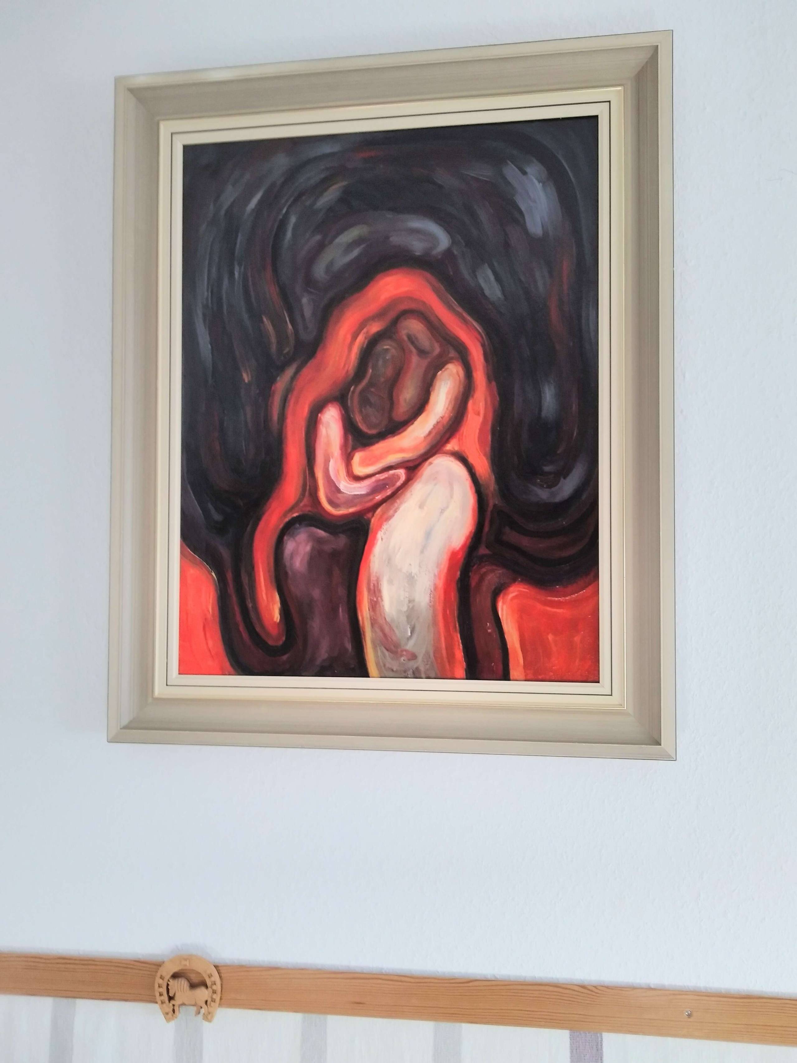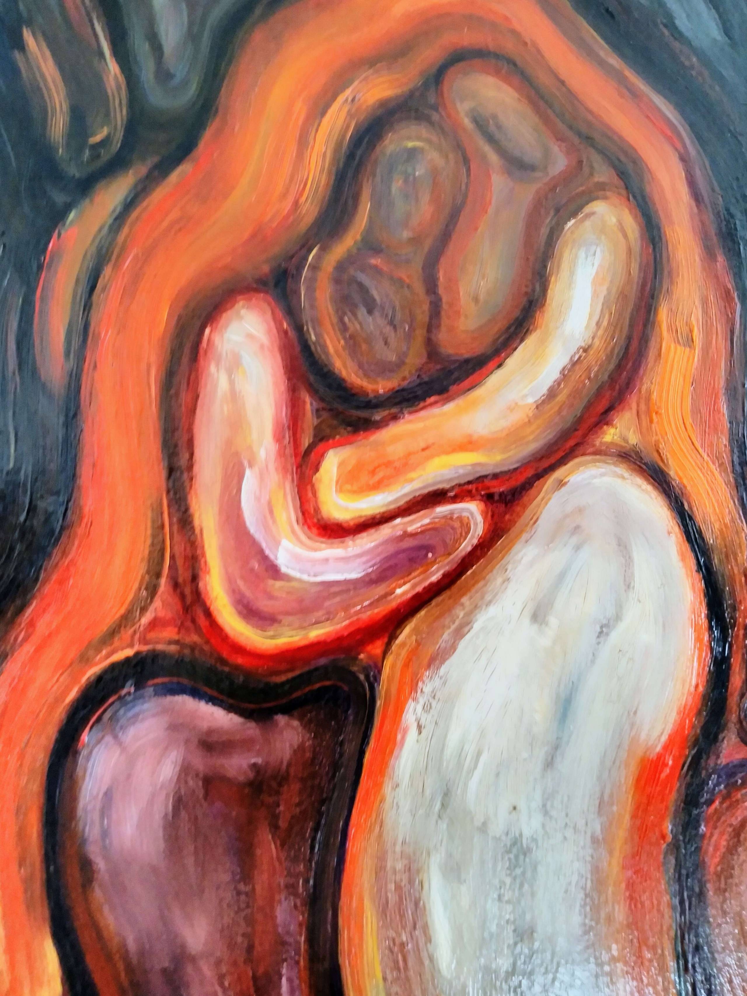 Cnota i grzech połączone w bólu po stracie ukochanej osoby. W takiej sytuacji dopiero wiemy, że ocena innych nie należy do nas. " Żyjmy i pozwólmy żyć innym ". A sam obraz w swej wyrazistości kolorystycznej i prawie abstrakcyjnej formie budzi ciekawość i fantazję widza. Pozostawmy Mu wolność i zachowajmy dyskrecję.