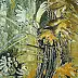 Obraz w nastroju jesiennej melancholii, bardzo ozdobny przez zastosowanie akcentów florystycznych. Wąska gama kolorystyczna oraz wplątana w kompozycję postać kobieca dodaje mu elegancji i powagi. Jako technikę wykonania artystka zastosowała znowu swobodne rozlewanie farby na kartonie, a następnie wprowadziła elementy rysunku. Jest to gwasz na kartonie, oprawiony w podwójną ramę w kolorystyce obrazu, ze szkłem antyrefleksyjnym / Wymiary obrazu z ramą: szer. 94 cm. x wys. 153 cm. /