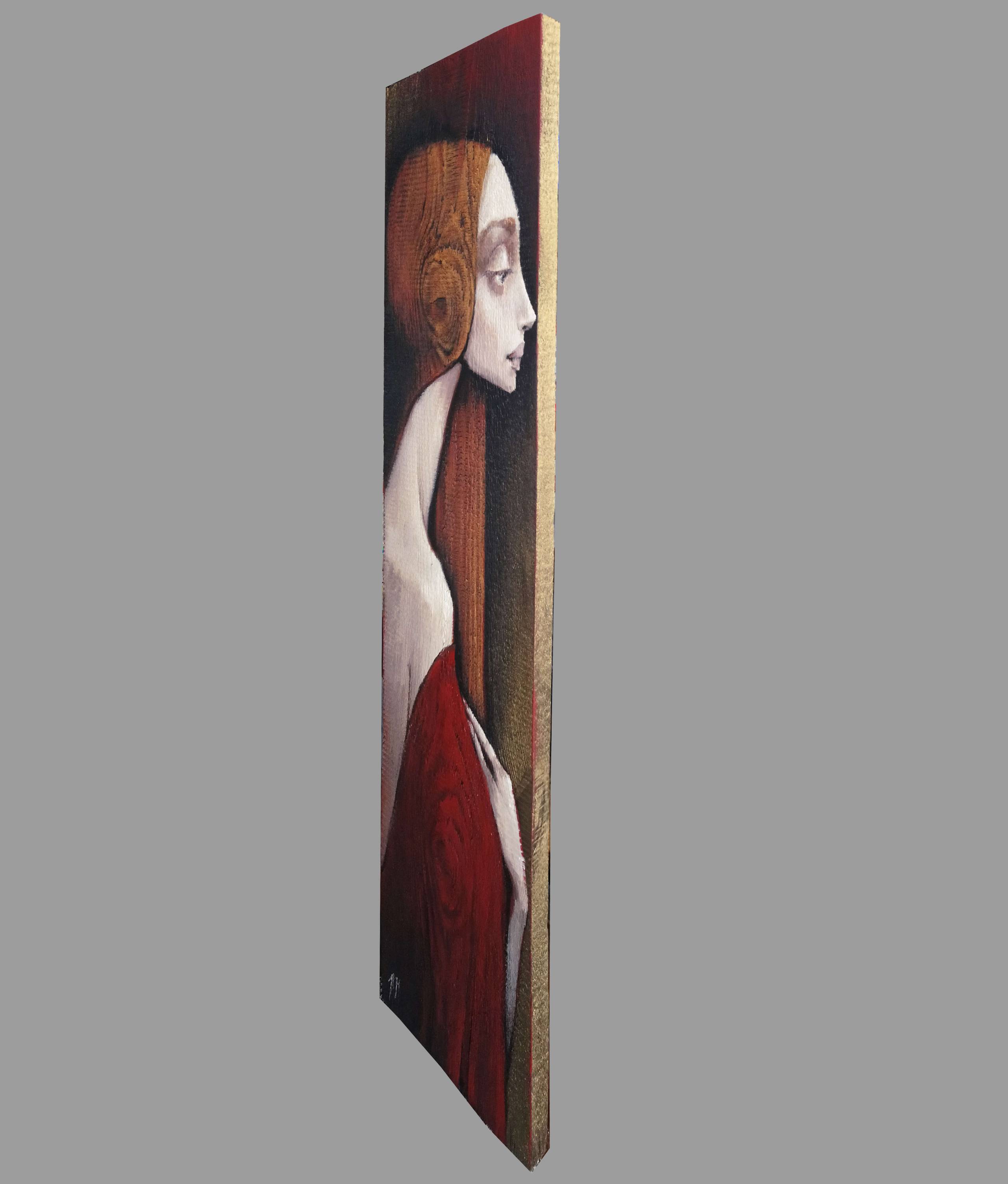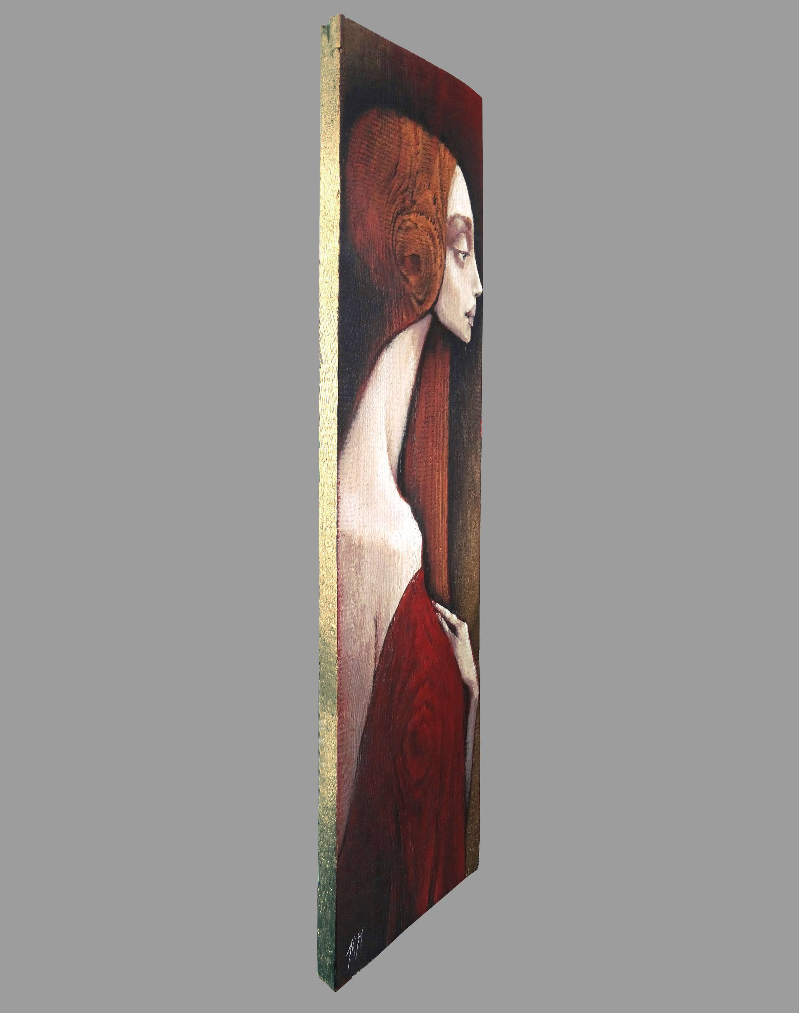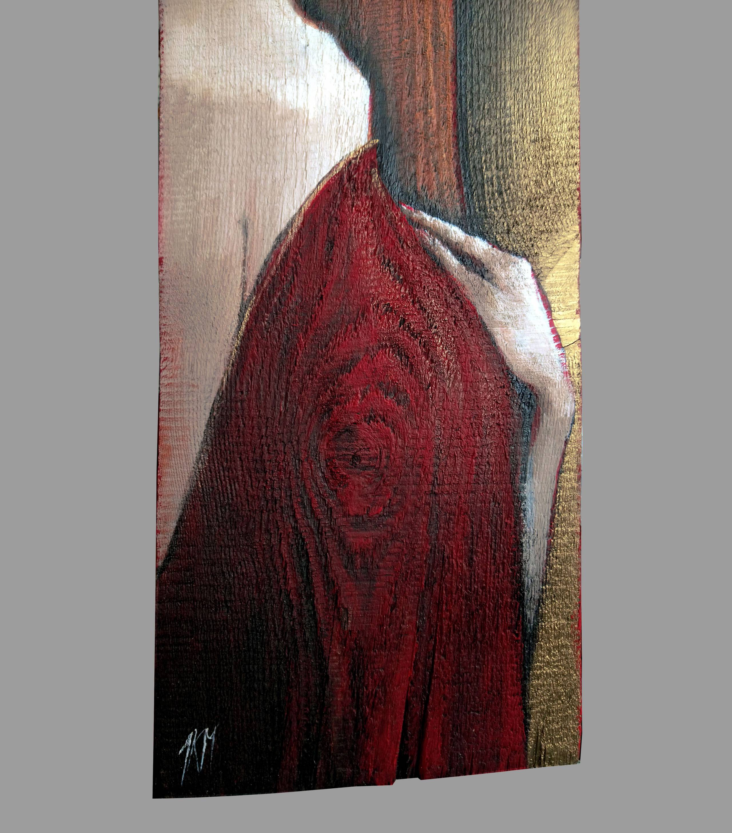Autorski Anioł Pallido namalowany na starej desce, format i powierzchnia nieregularne, wymiary: 101 cm / 28 / 2,6 cm. Liczne spękania i rozwinięcia powierzchni stanowią integralny element kompozycji, technika mieszana - olej i akryl, elementy złocone, malatura zaimpregnowana matowym werniksem. Na odwrocie zawieszka, waga ok. 4 kg. Drewno leżakowane, nie będzie ulegało deformacji pod wpływem wilgoci. Fotografie wykonane w różnych warunkach oświetleniowych. https://www.facebook.com/Jola-Karczewska-Me%C5%82nicka-380129788998694/ fb: Jola Karczewska-Mełnicka autor: absolwentka Wydziału Sztuk Pięknych w Toruniu, od kilkunastu lat zajmuje się malarstwem na drewnie, rzeźbą, projektowaniem oświetlenia oraz aranżacją wnętrz.