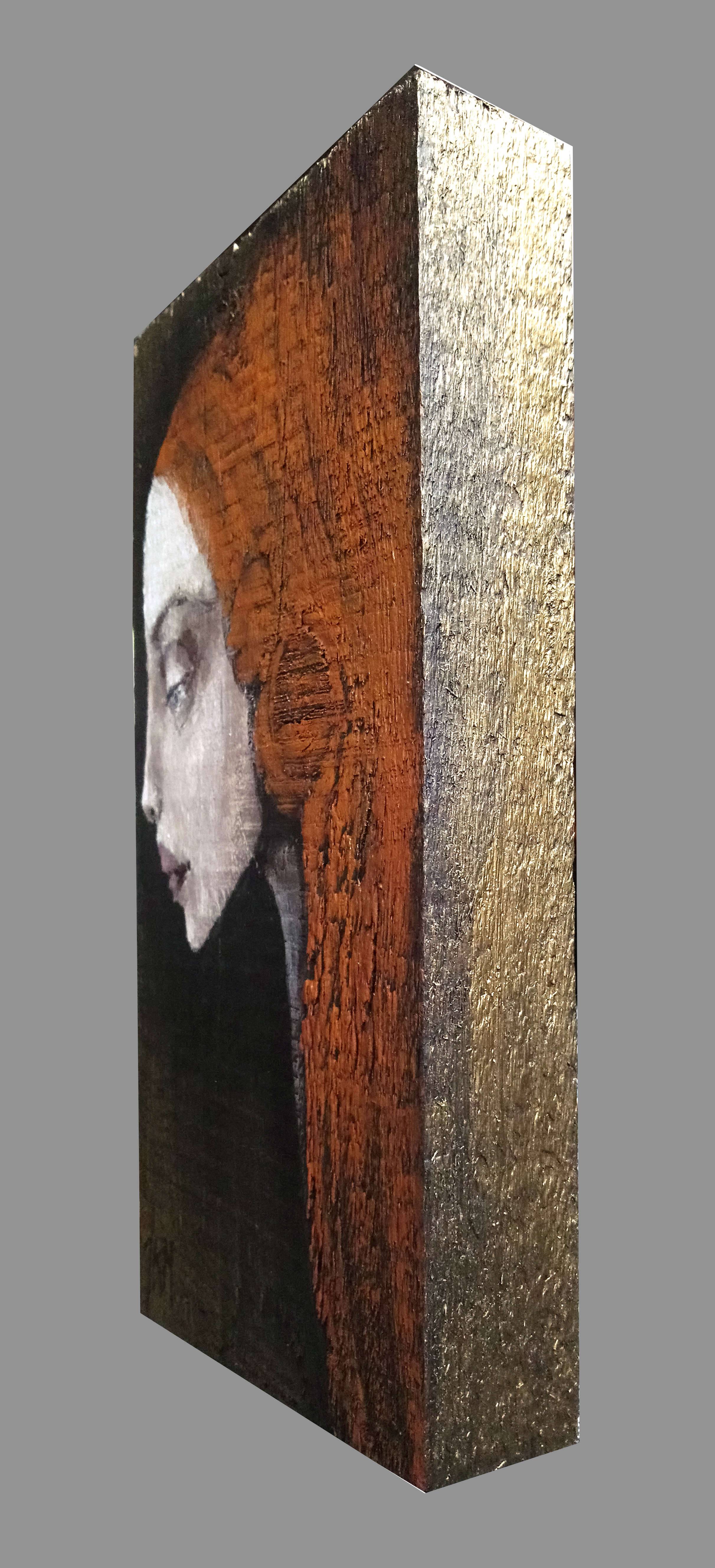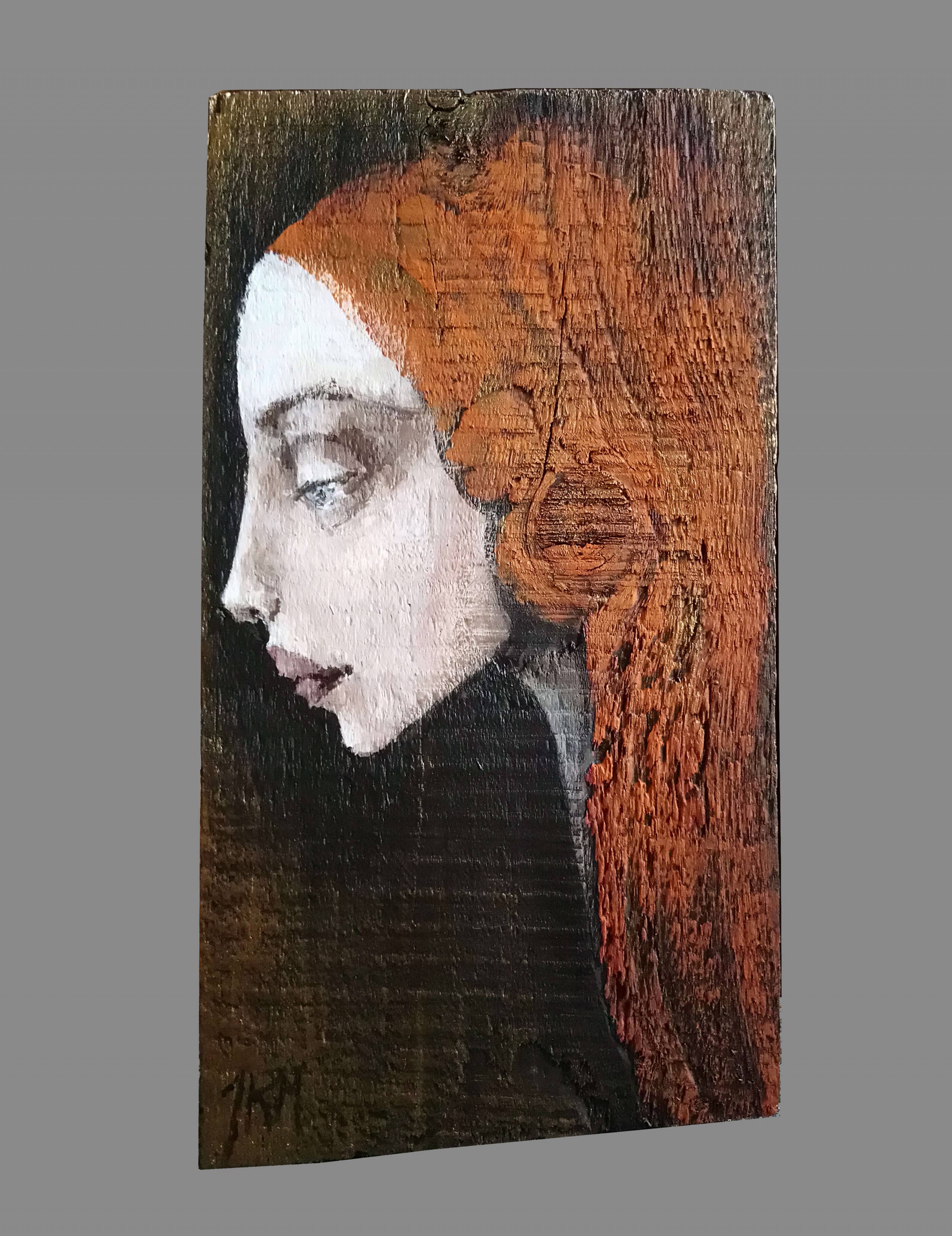 Autorski Anioł Treccio namalowany na grubej bukowej tarcicy, format i powierzchnia nieregularne, wymiary: 37 cm/ 20 cm / 5,5 cm. Liczne spękania i rozwinięcia powierzchni stanowią integralny element kompozycji. Technika mieszana - olej i akryl, malatura zaimpregnowana werniksem. Na odwrocie sygnatura oraz otwór do zawieszenia, waga ok. 2,5 kg. Drewno leżakowane, nie będzie ulegało deformacji pod wpływem wilgoci. Fotografie wykonane w różnych warunkach oświetleniowych. Autor - absolwentka Wydziału Sztuk Pięknych w Toruniu, zajmuje się malarstwem oraz projektowaniem wyposażenia wnętrz. FB https://www.facebook.com/Jola-Karczewska-Me%C5%82nicka-380129788998694/ fb: Jola karczewska-Mełnicka