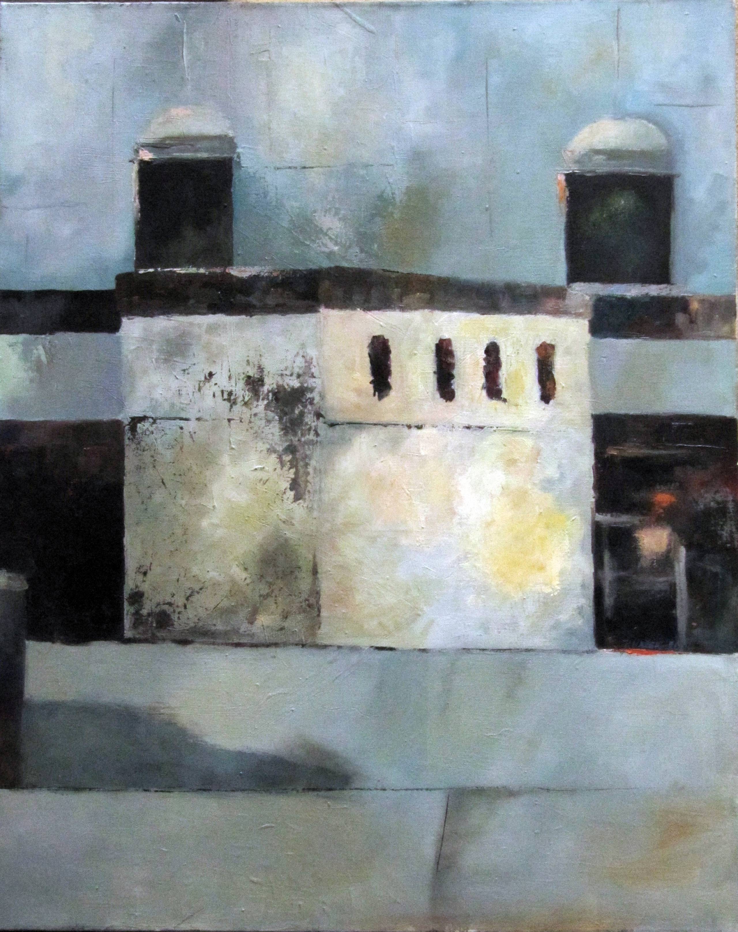 Obraz przedstawia surową bryłę, której chłodne tonacje błękitu i szarości dominują nad całością. Kompozycja jest oszczędna, a geometryczne kształty przyciągają uwagę prostotą formy. Dominuje tu klimat pewnej tajemniczości, jakby budynek nawiązywał do pustki i ciszy opuszczonego miasta. Czuję taki spokój patrząc na to. Ciekawy kontrast między ciemnymi a jasnymi fragmentami wzmacnia wrażenie głębi i przestrzeni. Technika, którą posługuje się artysta, to zapewne połączenie impastu i delikatnych przecierek, co dodaje obrazy tekstury i dynamiki. Jest takie "roughness" w sposobie, w jaki barwy się przenikają. Obraz budzi we mnie mieszane uczucia – z jednej strony pewna zimna obcość, z drugiej fascynacja surowością przedstawionej architektury. Nie mam pewności, co artysta chciał przekazać, ale może właśnie tę niejednoznaczność. A ja lubię, kiedy sztuka zostawia mi przestrzeń na własne refleksje. Gdybym był dzieckiem, powiedziałbym: "To wygląda jak zamek w chmurach!" I rzeczywiście, ta struktura, choć pozbawiona szczegółów, tchnie nieco magii i niedopowiedzenia. W jego prostocie jest coś niezwykłego, co sprawia, że chcę na niego patrzeć jeszcze dłużej.