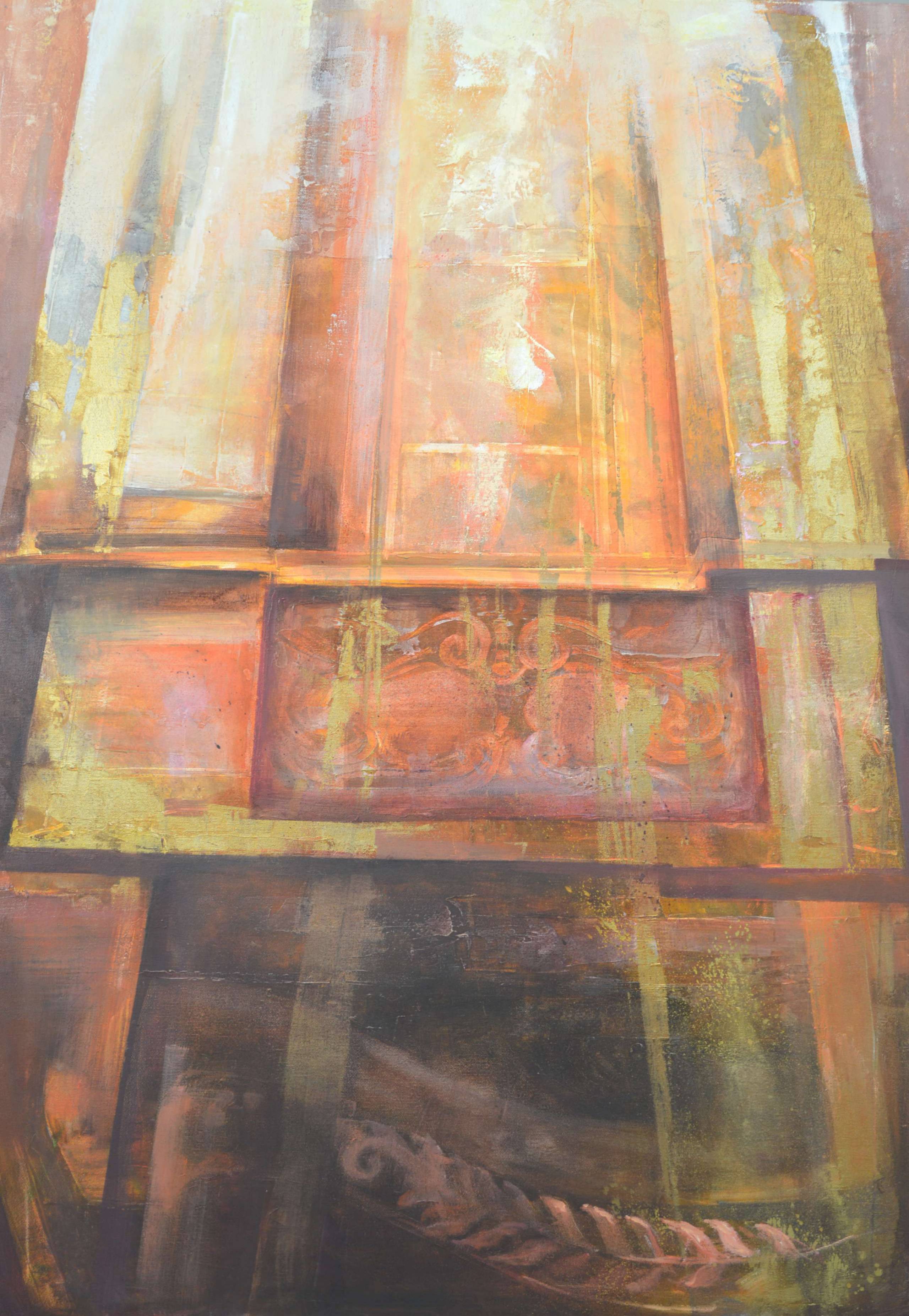 Obraz zachwyca bogatą paletą ciepłych brązów, złota i subtelnych różów, które przeplatają się z chłodniejszymi odcieniami szarości. Kompozycja jest wyrazista, złożona z geometrycznych kształtów i abstrakcyjnych form. Wygląda, jakby światło przenikało przez stare witraże, mieszając rzeczywistość z iluzją. Atmosfera obrazu jest spokojna, lecz pełna tajemnicy. Przyciąga wzrok i zachęca do odkrywania kolejnych detali. Styl artysty jest wyjątkowy, swobodnie operuje technikami łączenia kolorów i tekstur. Widać tu wpływy ekspresjonizmu i kubizmu. Użycie techniki impasto dodaje obrazowi trójwymiarowości, przez co pojawia się wrażenie, że można niemal dotknąć tej faktury. Obraz budzi w odbiorcy poczucie zagubienia, ale i zaciekawienia. To trochę jak wędrówka po zawiłych korytarzach emocji. Może ktoś zobaczy tu okno do przeszłości, a inny drzwi do przyszłości. Siedmiolatek powie: to magiczne okna. I coś w tym jest. Obraz daje przestrzeń do refleksji, przypominając, że świat jest pełen niewidzialnych granic. Naprawdę, "amazing".