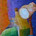 Obraz przypomina mozaikę pełną energetycznych kolorów. Przeważają odcienie fioletu, pomarańczu i zieleni, tworząc dynamiczną kompozycję, która przyciąga wzrok. Obiekty na obrazie są zgeometryzowane, jakby artysta bawił się pikselami. Kształty zdają się być abstrakcyjnymi przedmiotami codziennego użytku, przedstawionymi w ciekawy, nieoczywisty sposób. Atmosfera emanująca z dzieła jest pełna życia i energii, jednocześnie ma w sobie pewną tajemniczość i intryguje. Styl jest zdecydowanie kubistyczny, gdzie rzeczywistość jest rozbita na fragmenty i składana na nowo. Technika polega na nakładaniu tłustych pociągnięć pędzlem, które nadają teksturę i intensywność. Kolory są wręcz vibrant i mogą wywoływać poczucie zachwytu czy wręcz radości u widza. Dla mnie to taki obraz, który mógłby wisieć w nowoczesnym salonie, ale byłby też świetny w galerii. Patrzę i myślę: Wow, to jest artystyczny chaos. Jakby ktoś próbował uchwycić coś więcej niż tylko zwykłe przedmioty. Emocje mogą sięgać od radości do zamyślenia, z nutką nostalgii. Wszystko jest takie... pełne życia i wigoru. This feels alive, jakby artysta oddał nieco swojej duszy na płótno. "To jest tak jak moja plama farby, tylko ładniejsze" powiedziałby mały Michałek. Obraz ten przypomina mi, że sztuka może być zarówno prostą, jak i złożoną przygodą dla naszego umysłu.