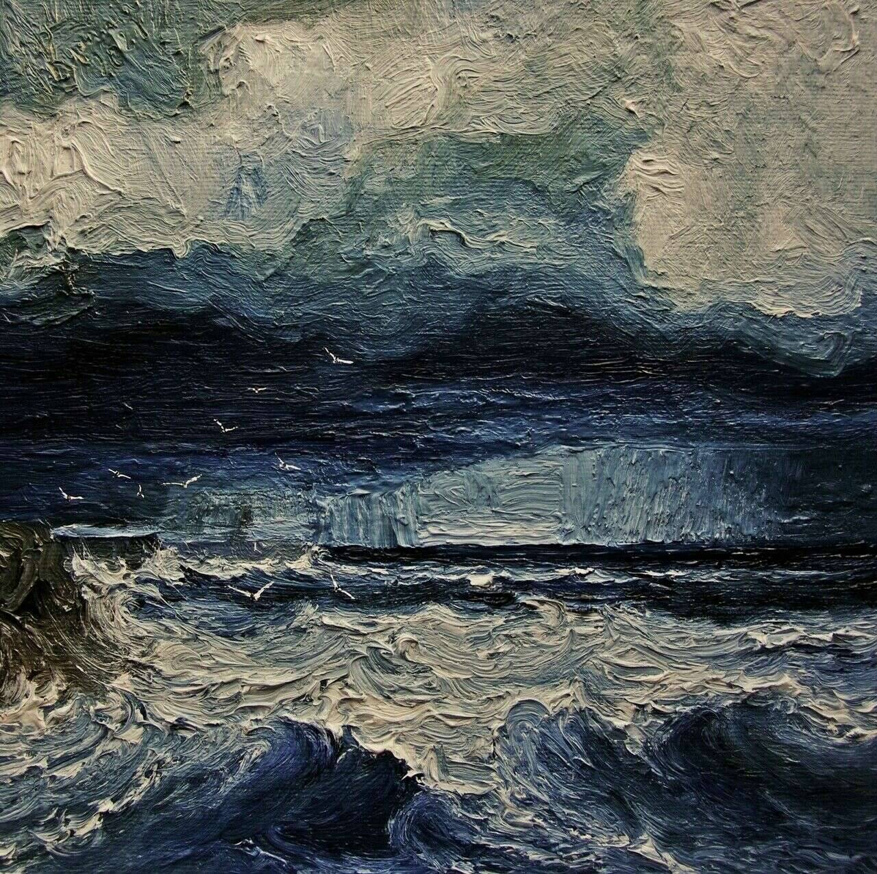 Seria obrazów olejnych "Morze", 2021. Technika autorska. Certyfikat autorski. Malarstwo teksturalne. Obraz olejny malowany pędzlem, dłońmi, palcami. Brzegi obrazu zamalowane w kolorze całości obrazu. Series of oil paintings "Sea", 2021. Technique author, author's certificate. Painting textural. Oil paint applied with a brush and with fingers. Edges painted in full color.