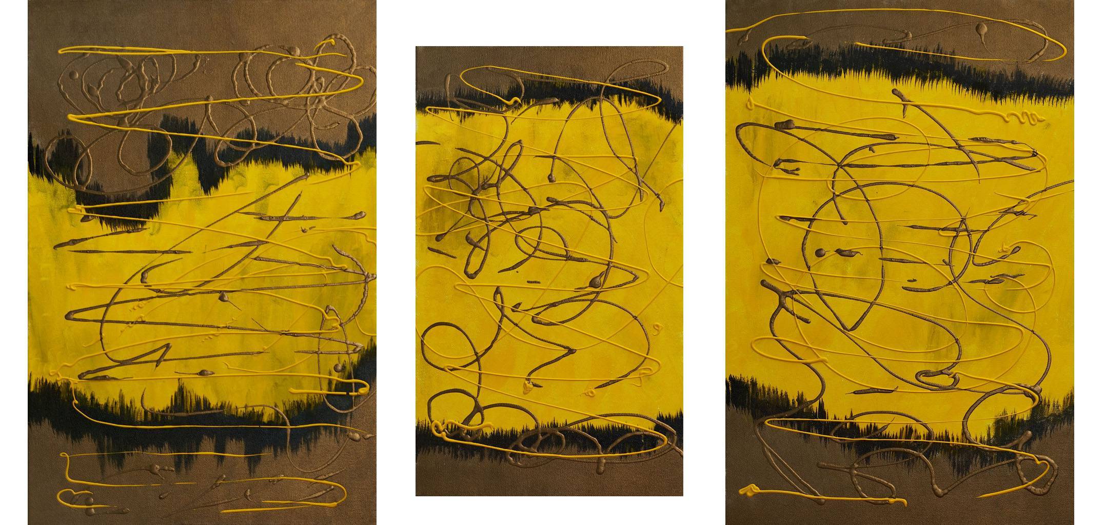 Obraz jest niczym eksplozja emocji na tle złocistej pościeli, gdzie czarne i brązowe pociągnięcia pędzla tańczą jak nieokiełznane myśli. Żółć, tak intensywna i żywa, rządzi przestrzenią, wciągając odbiorcę w głębię ekspresji. Dynamika linii przywołuje wspomnienie chaotycznych chwil, które każdy z nas czasem przeżywa. Można by rzec, że ten obraz krzyczy do nas, mimo braku słów. Styl przypomina mi nieco abstrakcyjny sposób Jacksona Pollocka, choć tutaj kompozycja zdaje się być bardziej przemyślana. Technika jest mieszanką spontaniczności i kontroli, niczym emocje artysty zaklęte w żywej farbie. To trochę jak gdyby ktoś próbował uporządkować burzę myśli jednym ruchem pędzla. Odbiorca może poczuć się zdezorientowany, ale i zainspirowany, zatrzymując się by dostrzec piękno w chaosie. Wow, to naprawdę coś! Energia bijąca z płótna jest niemal namacalna. Czujesz, jakbyś mógł dotknąć tych emocji, prawda? To "freedom" w najczystszej postaci. Kto wie, może obraz mówi o podróży przez życie, pełnej zawirowań i radości, w końcu nie wszystko musi być takie oczywiste.