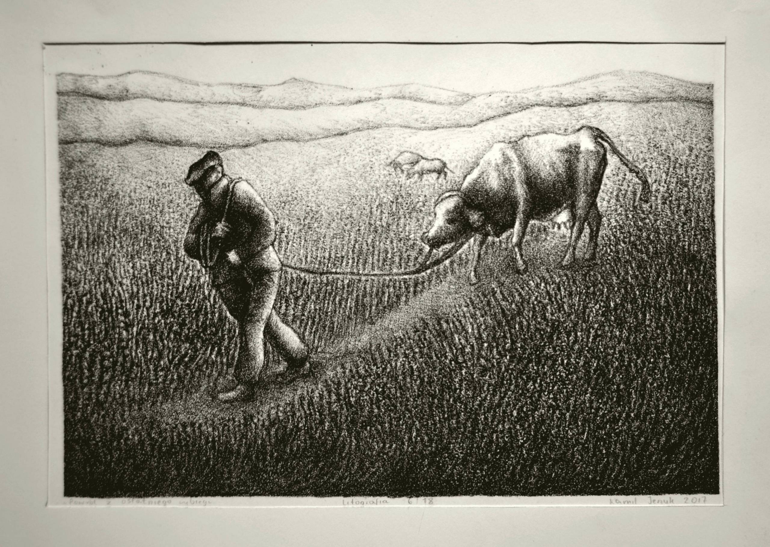 "Powrót z ostatniego wybiegu" litografia, 2017.