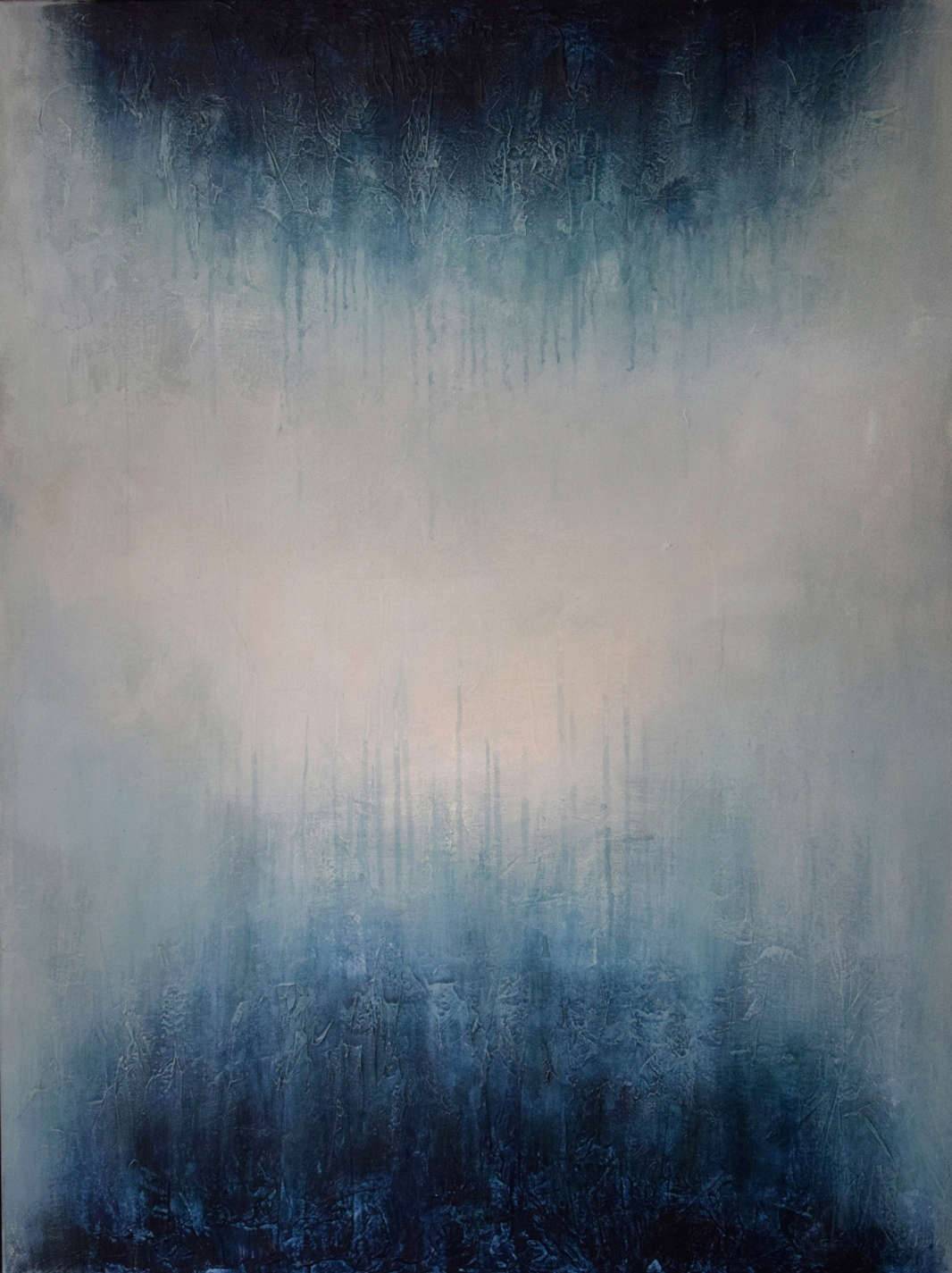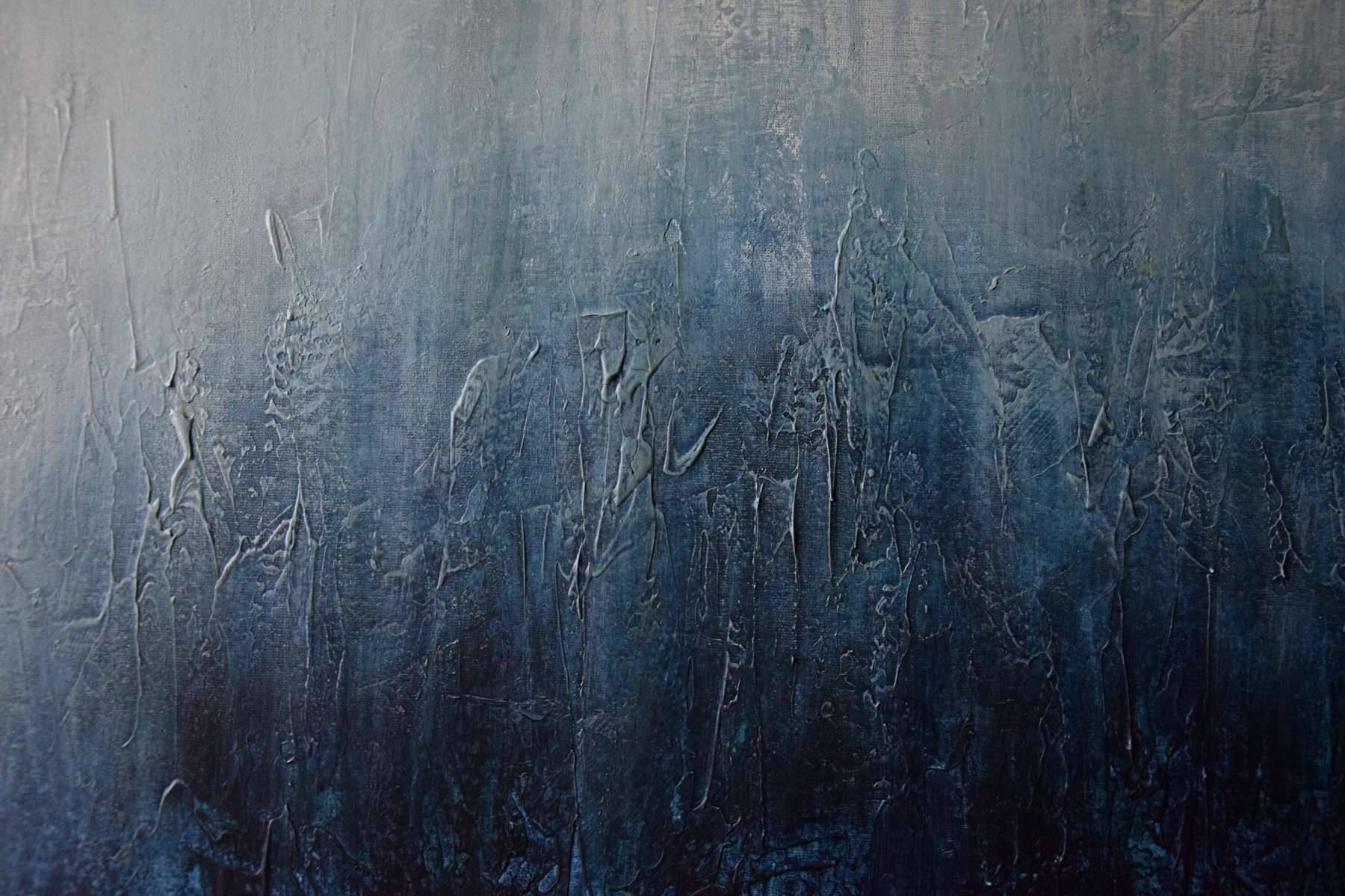 Ekspresyjna abstrakcja na płótnie, dominują akcenty w odcieniach błękitu pruskiego. Obraz posiada matowe wykończenie. Wykonany w pojedynczym egzemplarzu, sygnowany na odwrocie.