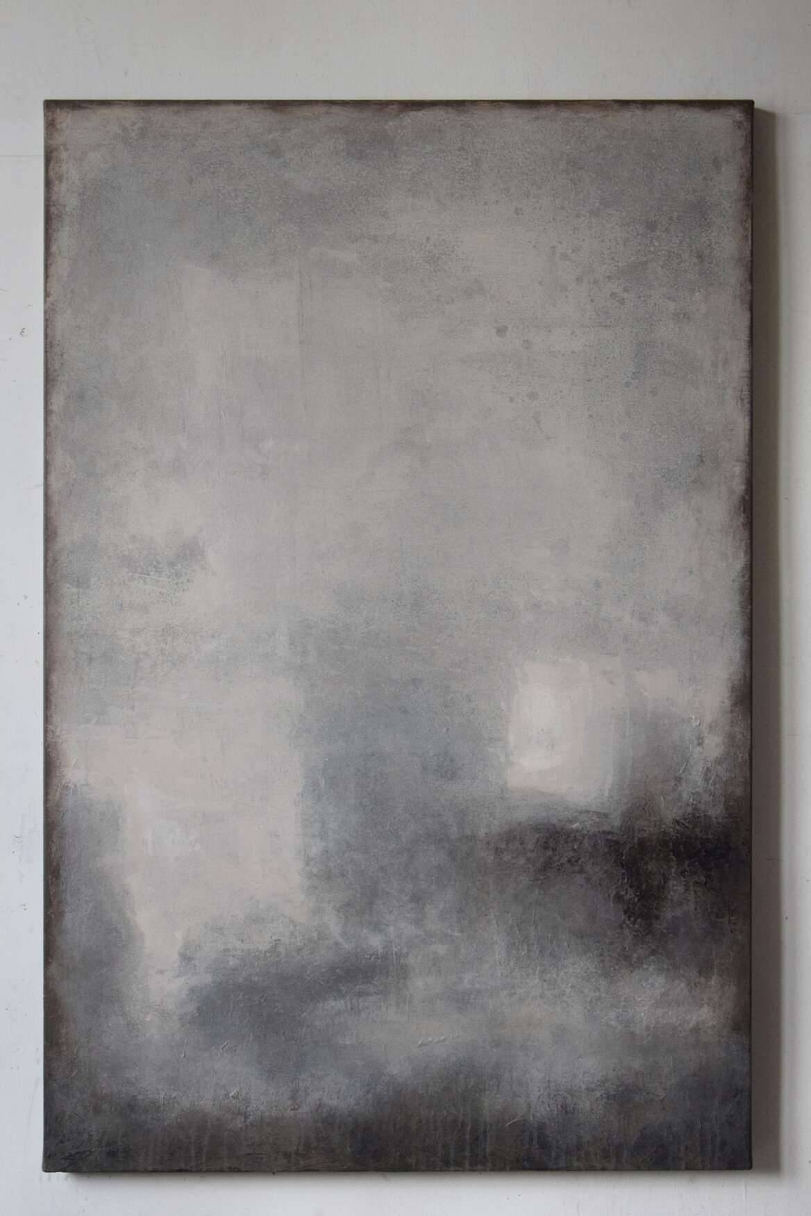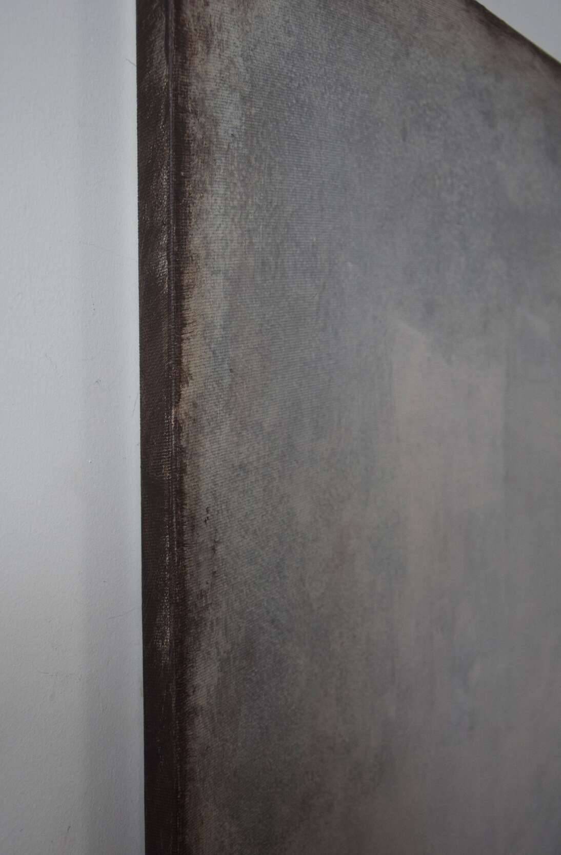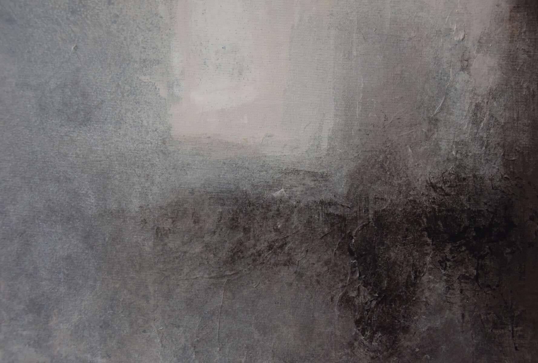 Stonowana, monochromatyczna kompozycja abstrakcyjna. Gama barw została ograniczona do wyszukanych szarości, świetlistych beży i subtelnych akcentów w czerni. Obraz posiada ciekawą, fakturową powierzchnię oraz matowe wykończenie. Boki podobrazia zostały zamalowane, stanowią kontynuację obrazu, dlatego nie jest konieczne oprawianie obrazu. Unikalna praca, sygnowana na odwrocie.