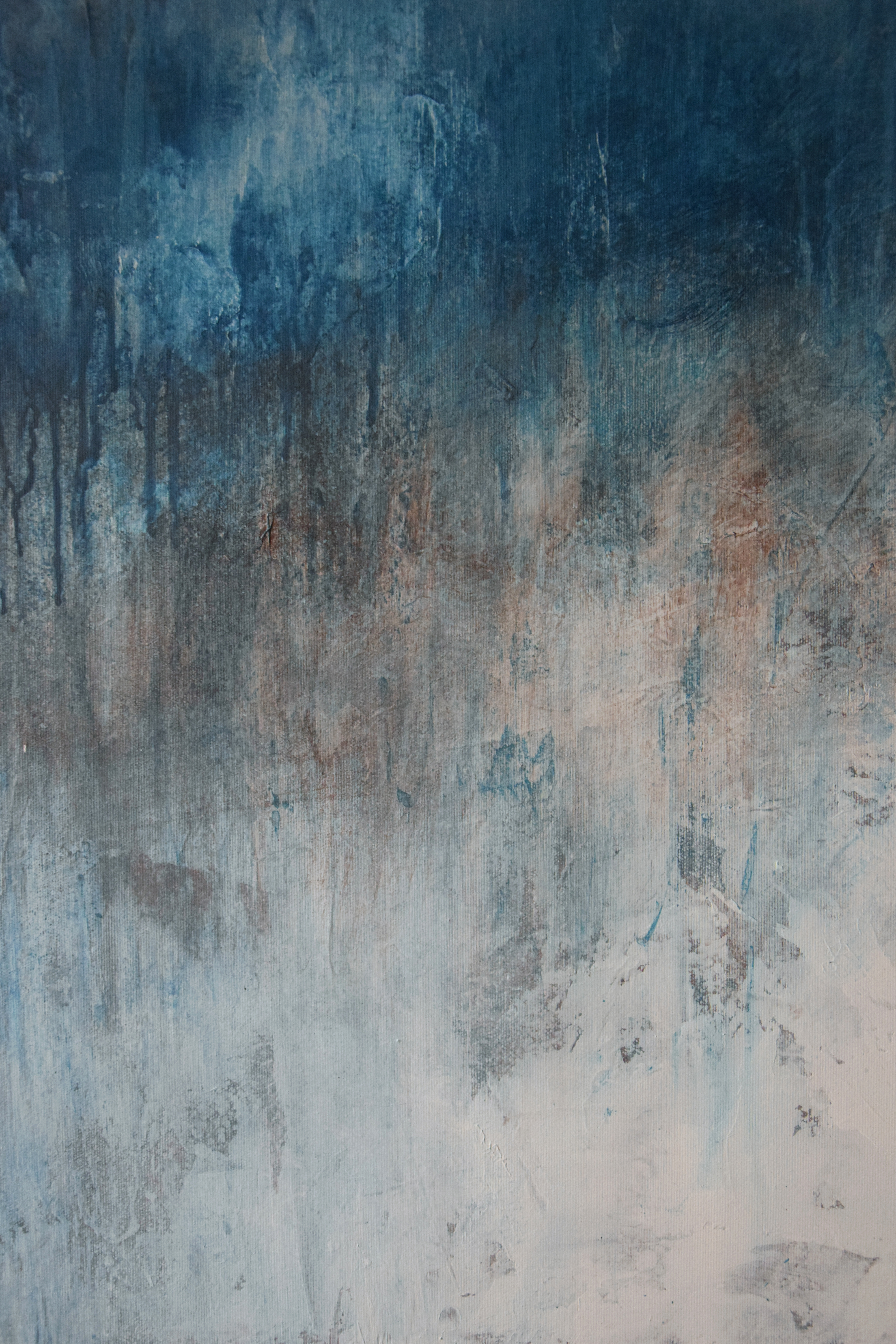 Współczesna abstrakcja na płótnie w dominujących odcieniach pruskiego błękitu. "Kaskada" może być odbierana w wieloraki sposób. Wyczuwa się tu jednocześnie ekspresję i harmonię. Obraz został wykończony matowym werniksem. Boki podobrazia są zamalowane, dlatego obraz może wisieć bez ramy. Pojedynczy egzemplarz, sygnowany na odwrocie.