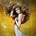 Na obrazie dominują ciepłe odcienie złota i brązu, które tworzą aurę tajemniczości i luksusu. Postać kobiety jest centralnym punktem kompozycji, jej spojrzenie pełne jest intensywności. W tle widać abstrakcyjne linie i wzory, jakby ktoś rozsypał konfetti w tańcu. Technika malarska artysty łączy realizm postaci z ekspresyjnym tłem, co dodaje głębi i kontrastu. Można się zastanawiać, kim jest ta osoba, jakie skrywa tajemnice. Obraz budzi ciekawość i inspiruje wyobraźnię. To trochę jak "magic", gdy patrzysz na coś niezwykłego i nie wiesz, co dokładnie widzisz, ale wiesz, że jest piękne. Czuje się tu mieszankę spokoju i dynamicznej energii. Kobieta wygląda jak jakaś bogini z dawnych czasów, otoczona blaskiem, który przyciąga każdego widza. Pomyślałem sobie - ciekawe, jakby to było stać tam obok niej. Może to odrobina niepewności zmieszanego z poczuciem zachwytu. Tak, to właśnie jest sztuka, która chwyta za serce.