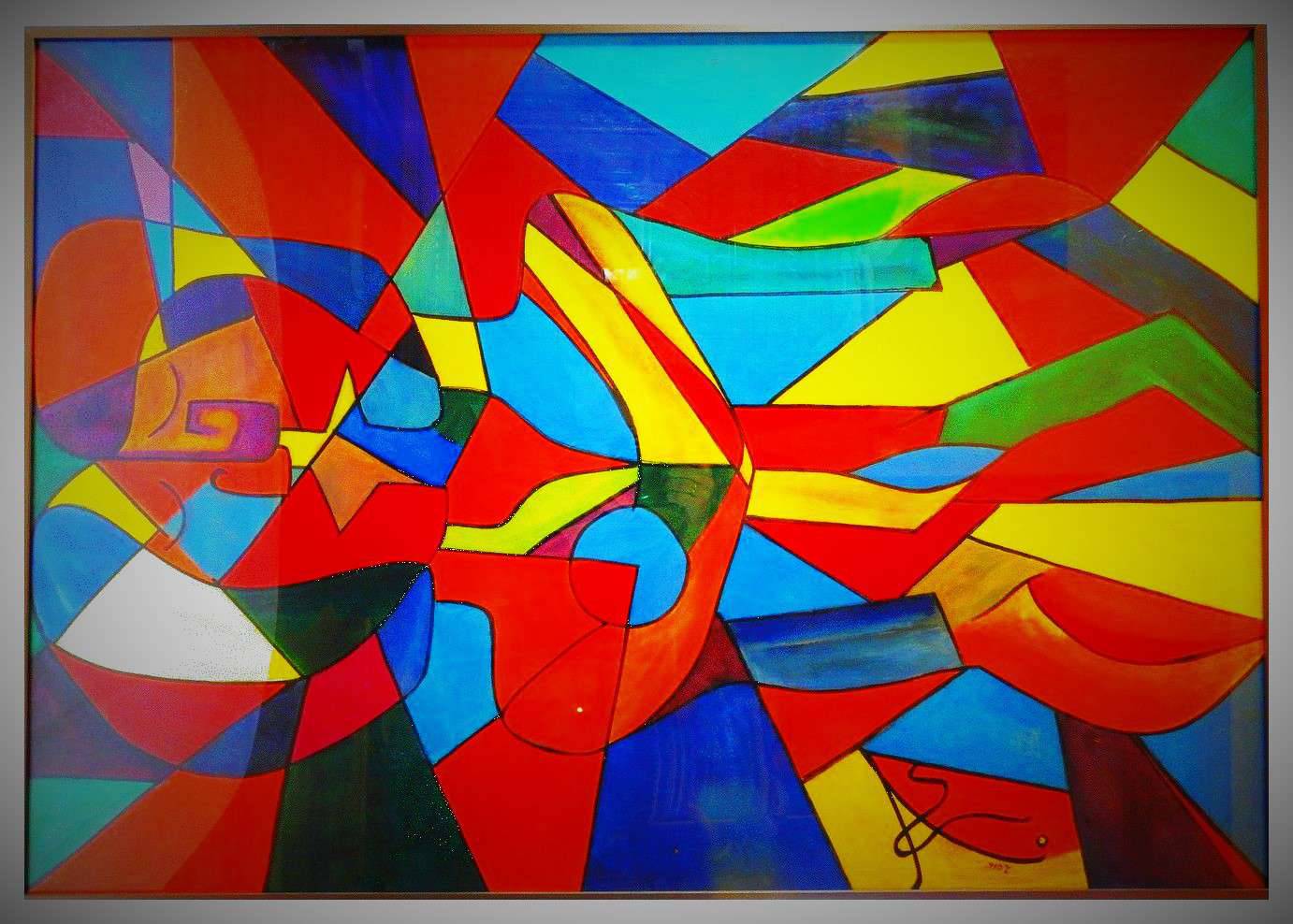 Obraz datowany i sygnowany. Obraz akrylowy, namalowany na papierze Obraz oprawiony w ramę i szkło, gotowy do powieszenia . Wymiary: 70 cm x 100 cm