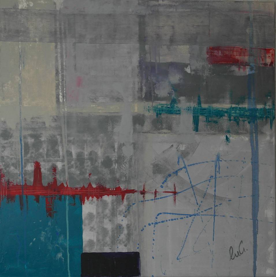 Na obrazie dominują stonowane szarości, które tworzą tło niczym płótno mgły, przez które przebija się głęboki czerwony pasek przypominający bicie serca. Kaskada niebieskich linii rozciąga się pionowo, jak muzyczne tony ukradkiem krzyżujące się z resztą kompozycji. To jakby mapa tajemniczych emocji na płótnie. Atmosfera jest intrygująca, tajemnicza, z nutką melancholii. Artysta posłużył się techniką abstrakcji, gdzie tekstury rozmytych plam i ostrych krawędzi tworzą dynamiczny kontrast. Kiedy patrzę na to dzieło, czuję coś jak „puls” niespokojnych myśli. Kompozycja ma coś wspólnego z muzyką, gdzie każda barwa to kolejna nuta. Niebo poprzecinane jest delikatnymi liniami, jakby ktoś rysował mazakiem na starym zdjęciu (to fun!). Te czerwone i niebieskie akcenty dodają energii, almost like a heartbeat pulsing through the paper. Z perspektywy dziecka: Wygląda jak niebo po deszczu, a te kreski to kałuże! To dzieło może wywołać nostalgię za dniami o mglistej aurze, pełnymi cichej zadumy i ukrytych tajemnic. Fascynuje mnie ta mieszanka spokoju i dynamicznej energii.