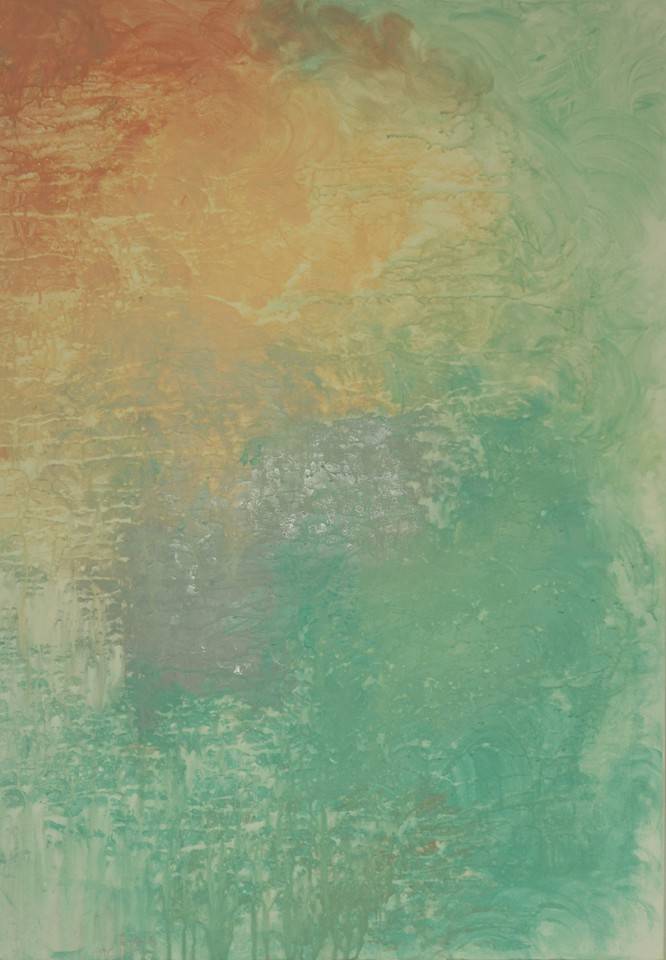 Na obrazie dominują ciepłe odcienie pomarańczu i zieleni, które tworzą harmonijną kompozycję przypominającą zorzę polarną skąpaną w delikatnej mgle. Kolory te płynnie przechodzą jeden w drugi, tworząc miękkie, falujące kształty. Całość przywodzi na myśl letni wieczór, kiedy światło słońca powoli gaśnie, a ciepłe powietrze przynosi nostalgię. Atmosfera obrazu jest uspokajająca, emanuje pewnym spokojem i ciszą. Malarskie pociągnięcia są luźne, swobodne, co sugeruje technikę akwareli lub farb olejnych naniesionych delikatnymi ruchami pędzla. Obraz wzbudza różnorodne emocje – od spokoju po lekką melancholię. Ktoś patrząc na to dzieło, może poczuć lekkie uspokojenie, jakby obserwował wschód słońca nad morzem. "Wow, ale kolorki!" - powiedziałoby dziecko. This artwork has a certain dreamy quality, zachwycający swoją delikatnością i subtelnością, przypomina o chwilach ulotnych jak letni wiatr. Jest w nim coś kojącego, co sprawia, że chce się zatrzymać i podumać nad ulotnością chwili.