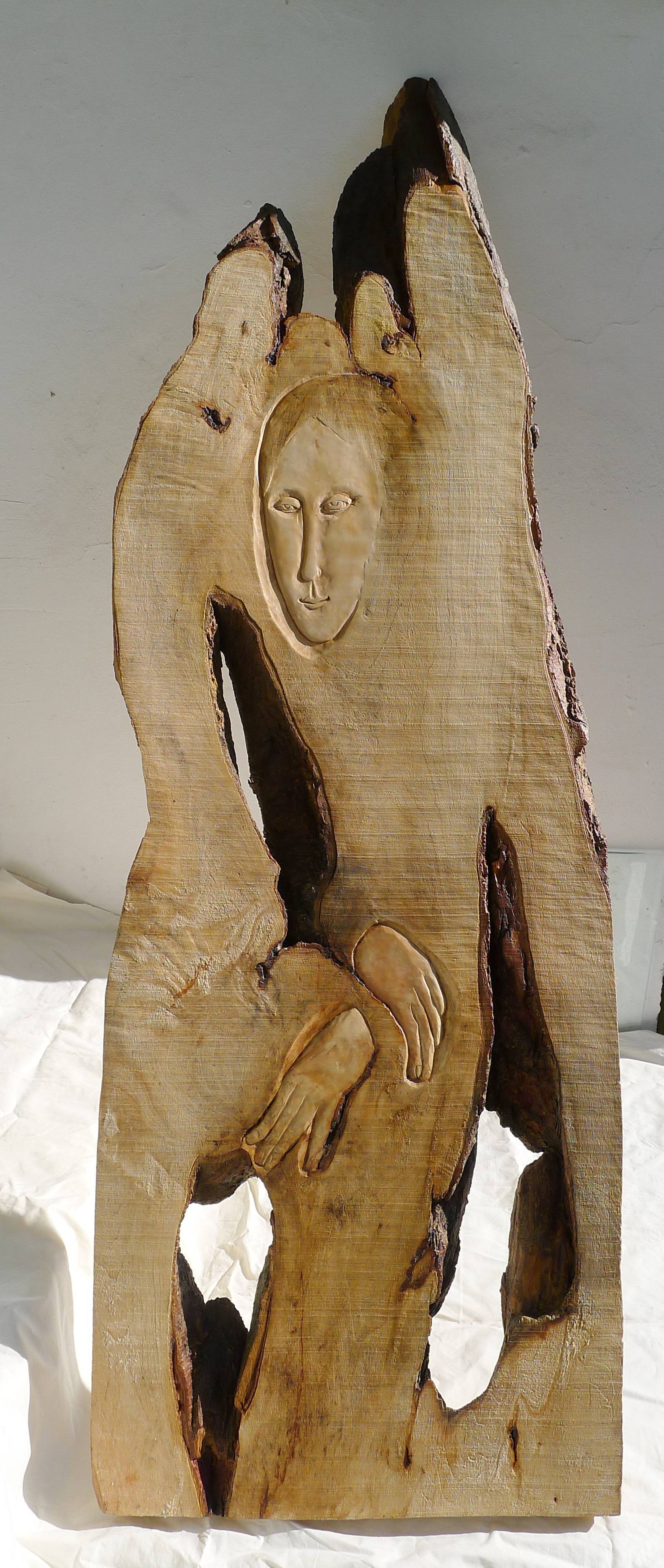 Obraz jest kawałkiem drewna, króry od razu krył w sobie wizerunek Mony Lisy. Podmalowałam go dłutem.