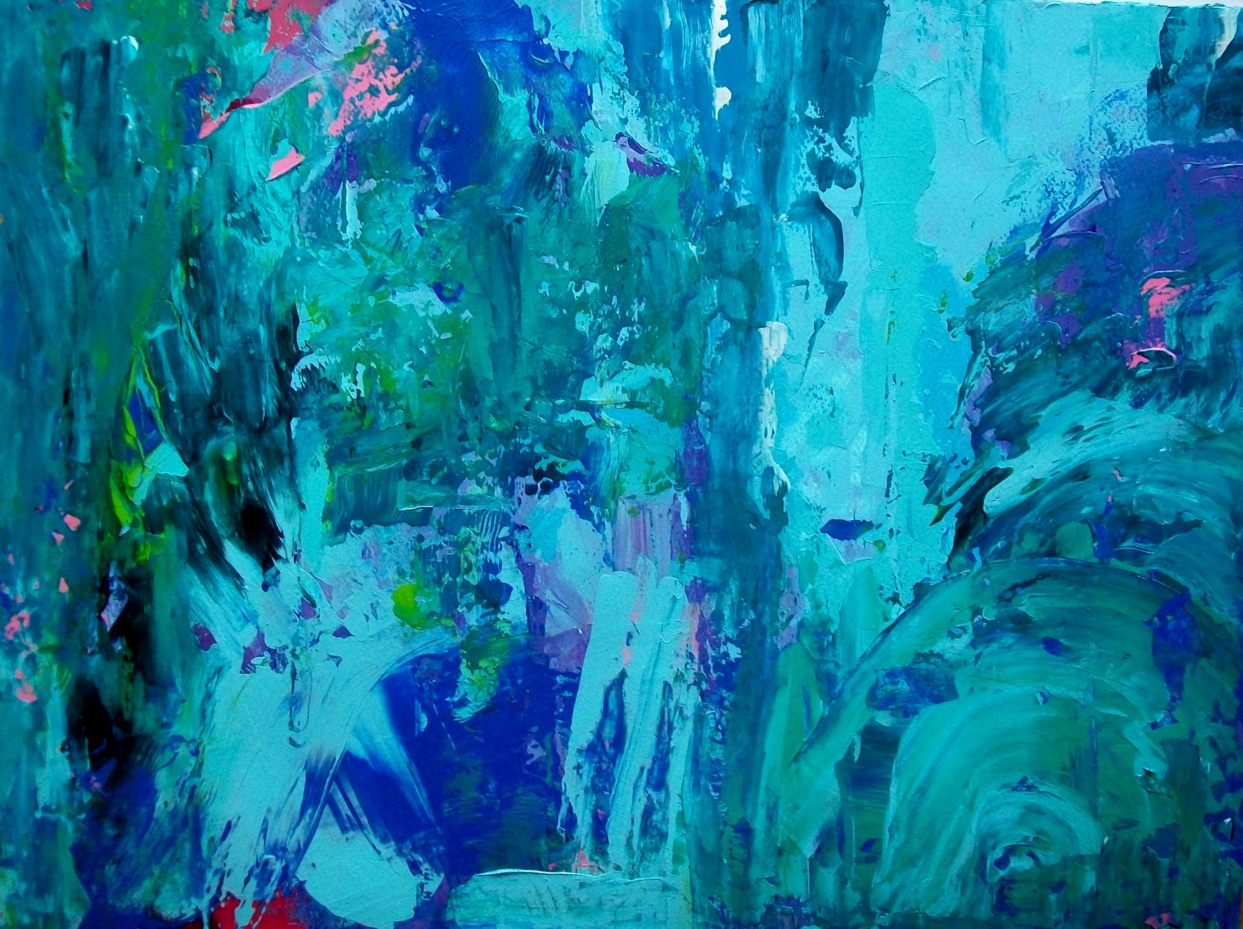 Obraz emanuje ferią turkusowych i zielonych odcieni, które tańczą w nieokiełznanym chaosie na płótnie. Artysta posługuje się impastem, nakładając farbę grubymi pociągnięciami pędzla, co tworzy mocno zróżnicowaną fakturę. Plamy kolorów przeplatają się jak morskie fale, w których można dostrzec przebłyski różu i fioletu, dodając pracy dynamicznego kontrastu. Atmosfera? Tajemnicza i spokojna zarazem, jakbyśmy patrzyli przez zanurzone w wodzie okulary na podwodny świat. Może przypominać o miejscu, gdzie można na chwilę się schować przed światem i po prostu być. Ten styl artystyczny to abstrakcja, bez wątpienia, ale daje odbiorcy mnóstwo pola do interpretacji. Ja tu widzę ocean pełen tajemnic i nieodkrytych sekretów. Dla siedmiolatka to może być „podwodne wakacje dla rybek”. Ojej, jest w tym coś magicznego! Całość jest jak dreamy landscape z innego świata, wciągająca i enigmatyczna. Patrząc na ten obraz, czuję wewnętrzny spokój, czas staje w miejscu, a ja zanurzam się w tej kolorystycznej harmonii. Co powinniśmy zrobić? Zatrzymać się, podziwiać i pozwolić sztuce mówić do nas na swój unikalny sposób.