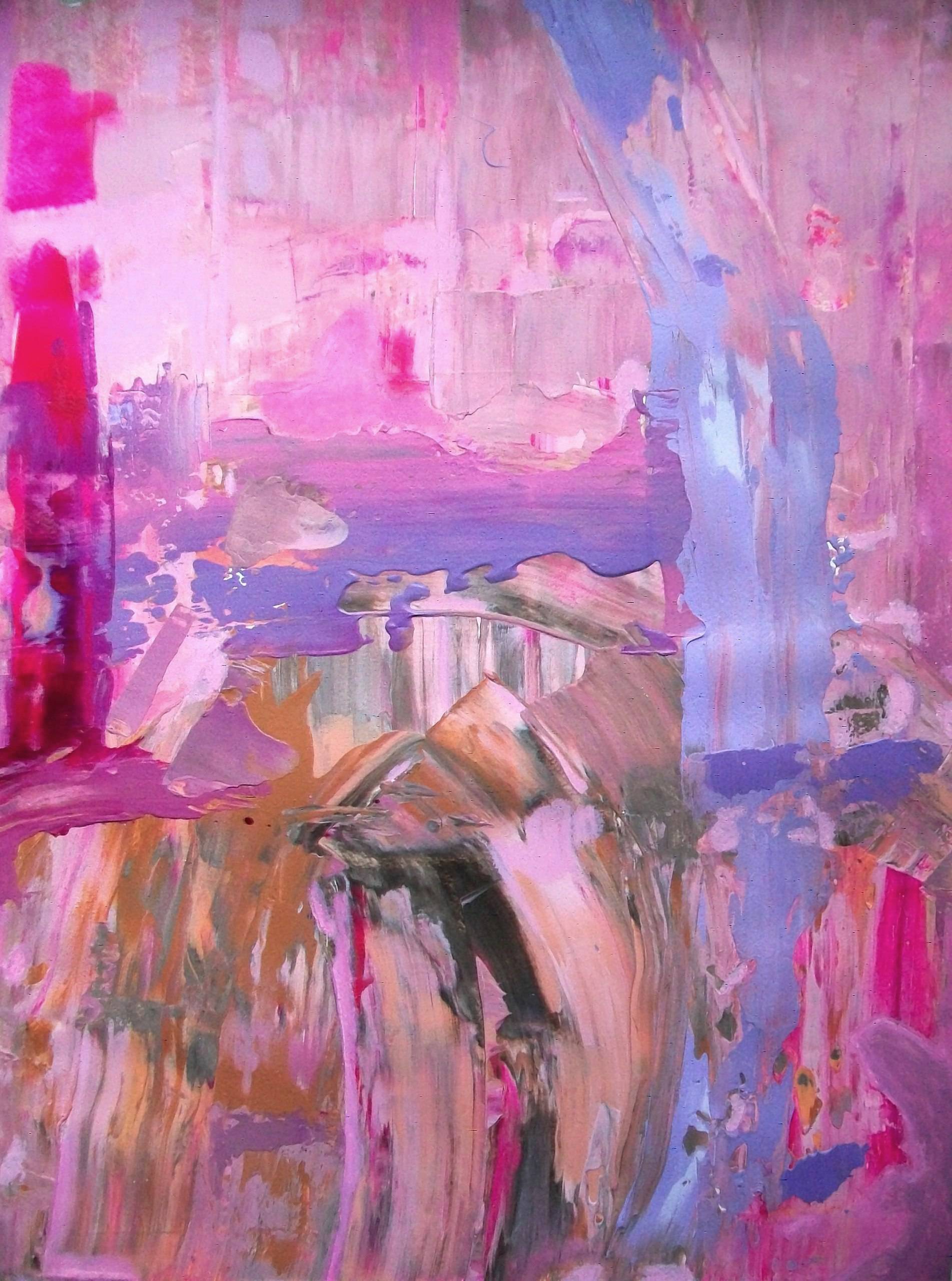 Obraz namalowany na papierze czerpanym oprawiony w matową metalową ramę.