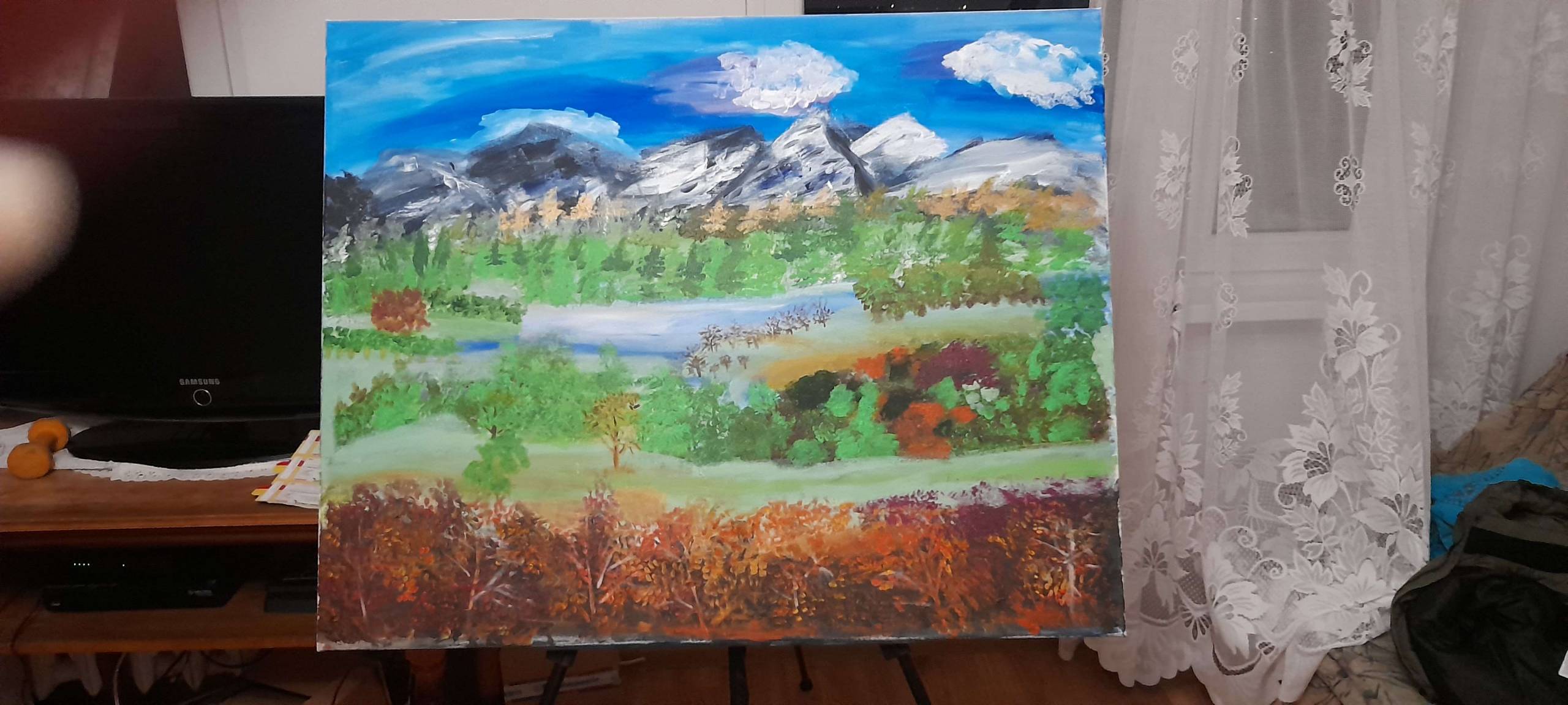 Piękny kolorowy pejzaż, rozjaśni, rozświetli każde pomieszczenie. Uspakaja, dodaje energii i optymizmu. Niezwykle efektywny, z nutką impresjonizmu. Wciąga w głąb natury i przyrody.