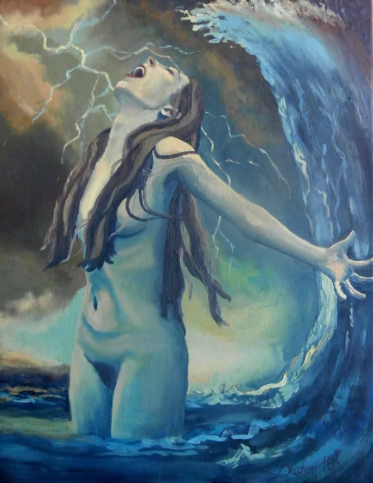 Kobieta na obrazie jest naga nie dla mężczyzn, jest taka jaka ją stworzono, bez masek, ubrań makijażu. Wolna, szczęśliwa, silna. Włada sobą a także i siłami natury. Połączona ze światem. Totalna wolność niepotrzebująca oświadczeń i manifestu wśród ludzi. Po wielu latach odnalazłam malarstwo, kawałek swojej osobowości, miłości do świata i sztuki. Przedstawiony akt jest totalną wolnością bycia tym, kim się jest.