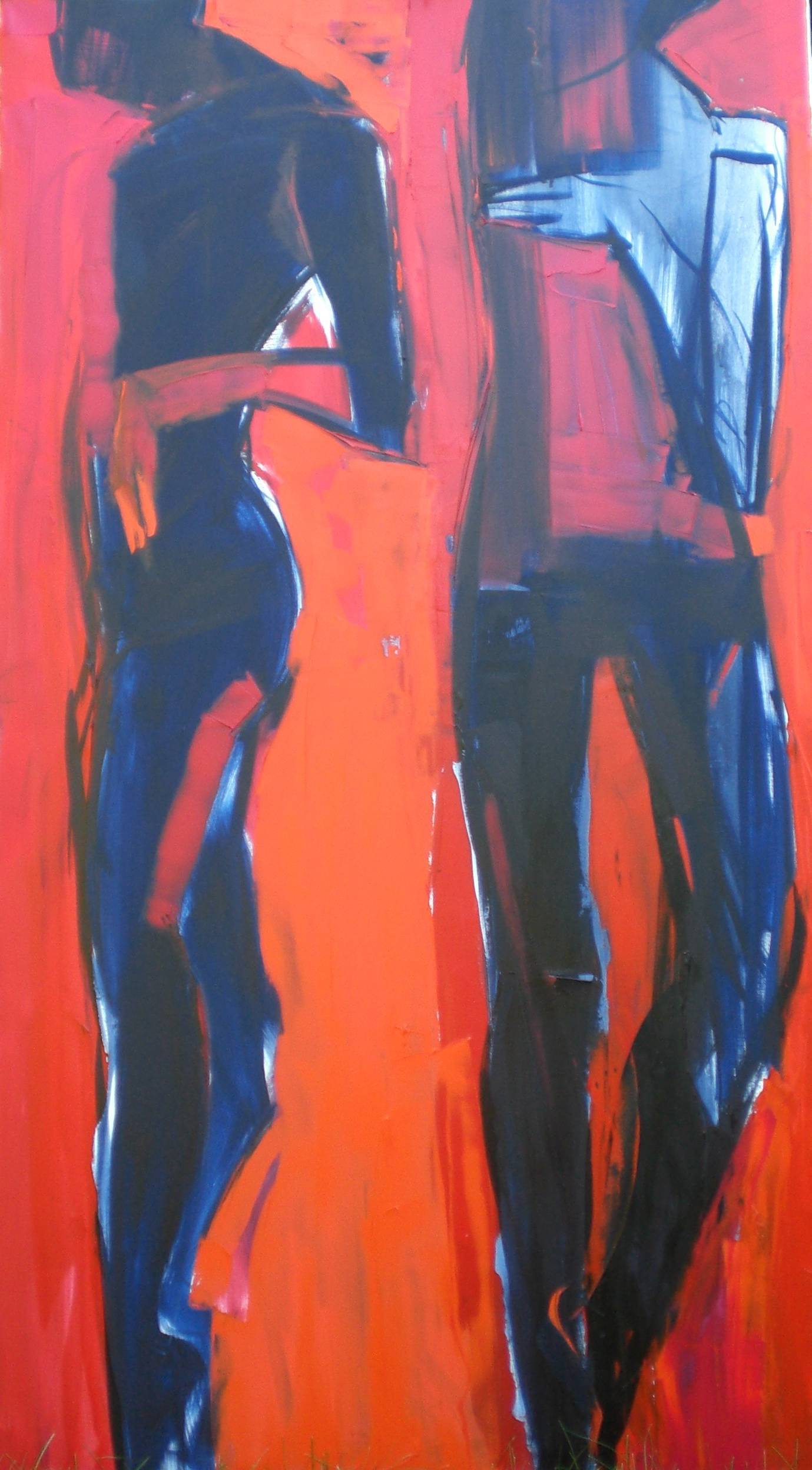 Obraz eksploduje intensywną czerwienią, która niemalże płonie na płótnie. Postacie, zatopione w mroku, emanują tajemnicą, która wciąga jak magnes. Ciemne sylwetki wyłaniają się na tle czerwonej ferii barw, tworząc dynamiczny kontrast między światłem a cieniem. Kształty nie są zdefiniowane, a mimo to od razu widać, że mamy do czynienia z dwiema ludzkimi postaciami. Artysta użył szerokich pociągnięć pędzla, co dodaje kompozycji ekspresji i ruchu. Jest tu intensywnie, ale i cicho – jak cisza przed burzą. Malownicze rozmazane kontury tworzą wrażenie ruchu, może nawet tańca we mgle. Ten obraz krzyczy energią abstrakcji. Użyte barwy i sposób nakładania farby sugerują silne emocje – pasję, może nawet gniew. Styl artystyczny przypomina nieco ekspresjonizm z nutą współczesnej ekspresji. To prawdziwie intrygujące dzieło może wywoływać u widza wrażenie niepewności, ale i fascynacji. Czuję, że patrzę na coś, co wykracza poza fizyczny świat. Red splendor czaruje, a każda obserwacja ujawnia nową, nieuchwytną warstwę. Jak taki ogień się pali na obrazku, to jest magiczne! Obraz zaprasza do refleksji nad ulotnością chwil i emocji, które przemijają, ale potrafią zostawić ślad.