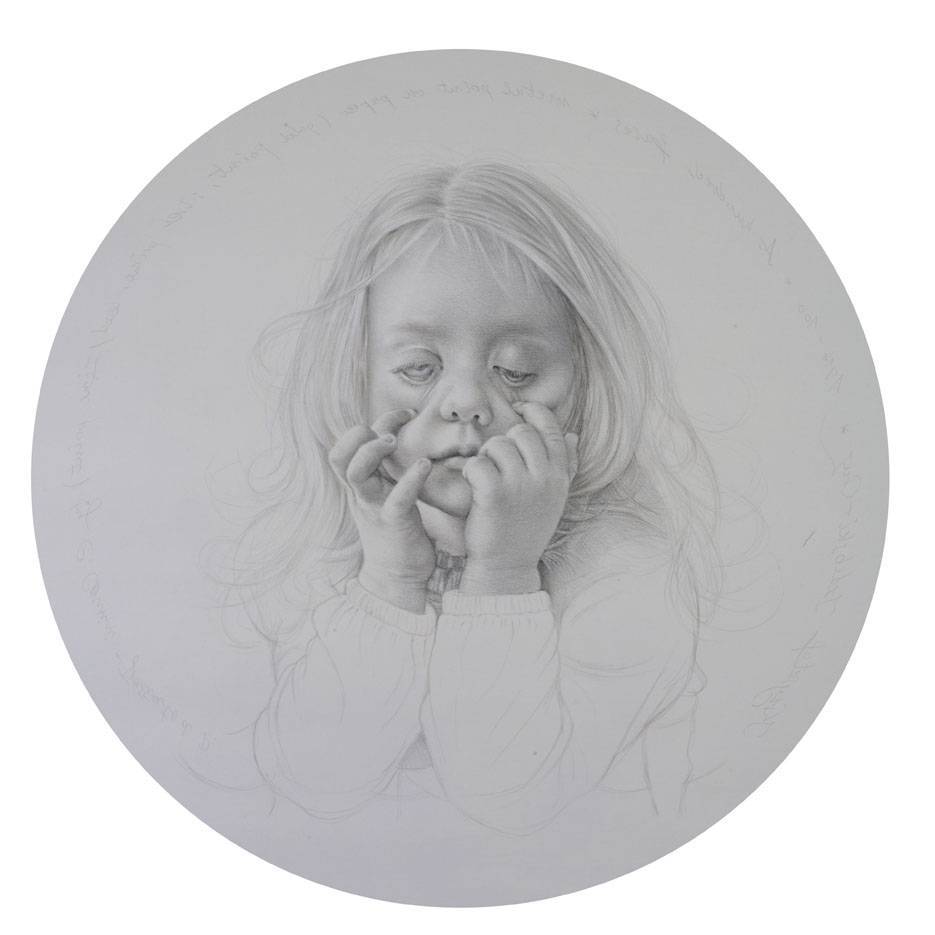 2014 r. śr. 52 cm, rysunek metalowym sztyftem na gruntowanym papierze (wg. Traktatu o malarstwie C. Cenniniego z pocz. XV w.) użyty sztyft: złoto 999,9, srebro 999 i 900, ołów z cynkiem 70/30.
