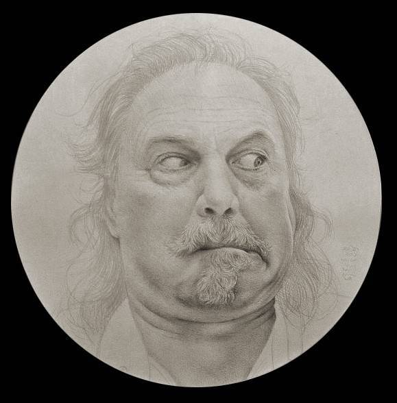 2014 r. śr. 30 cm, rysunek metalowym sztyftem na gruntowanym papierze (wg. Traktatu o malarstwie C. Cenniniego z pocz. XV w.) użyty sztyft: złoto 999,9 srebro 999, spinacz biurowy.