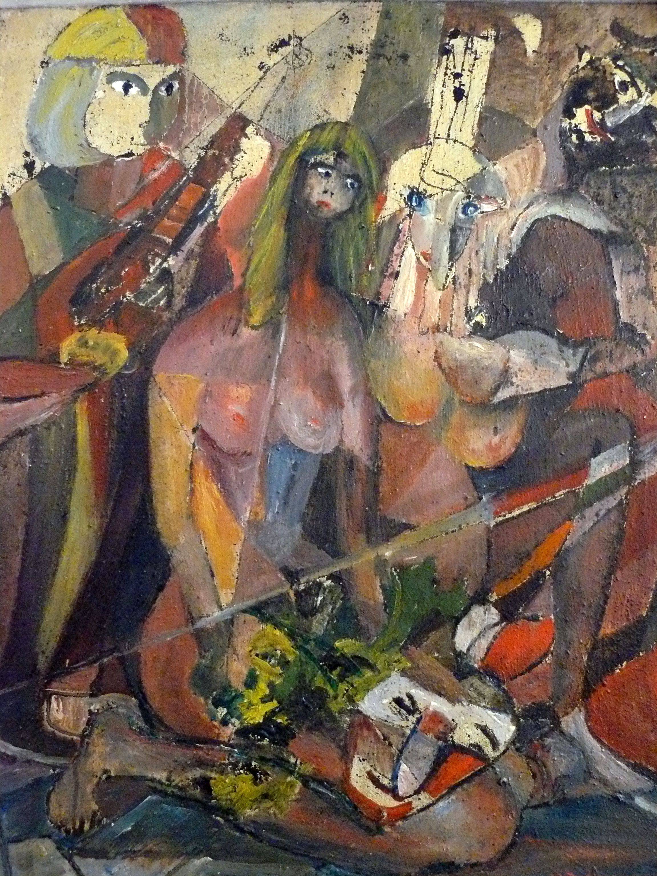 OBRAZ PRZEDSTAWIA GRUPĘ ARTYSTYCZNĄ W FANTAZYJNEJ SCENERII