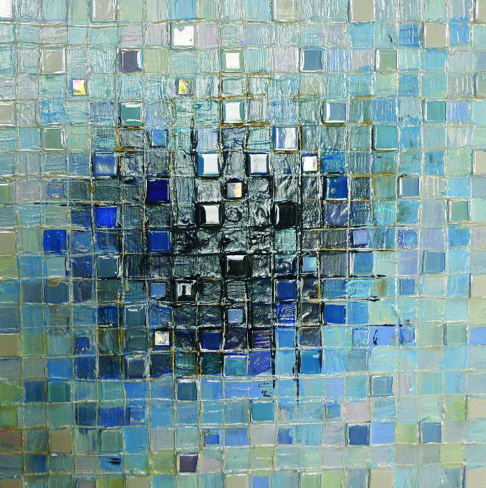 akrylowy,z elementami szkła i ceramiki, zabezpieczony werniksem,podłożem jest płyta laminowana,krawędzie zamalowane w tonacji obrazu, bez potrzeby ramy,przygotowany do powieszenia.