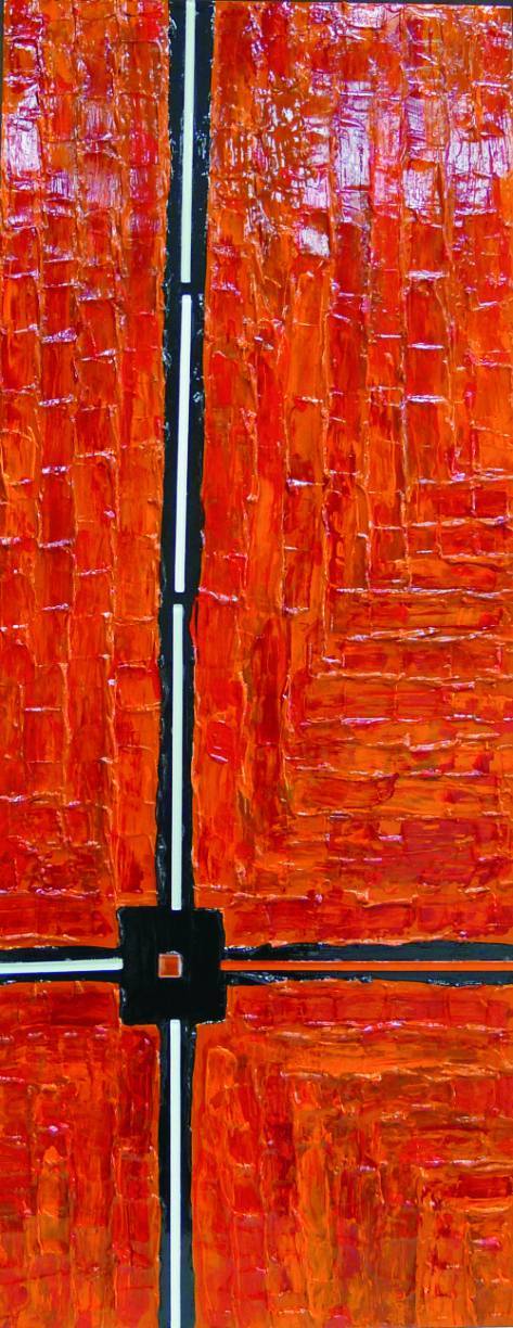 akrylowy,kolaż,werniksowany,podłoże płyta laminowana,zamalowane brzegi, gotowy do powieszenia, fakturalny, elementy ceramiki i szkła, możliwość powieszenia w pionie i poziomie