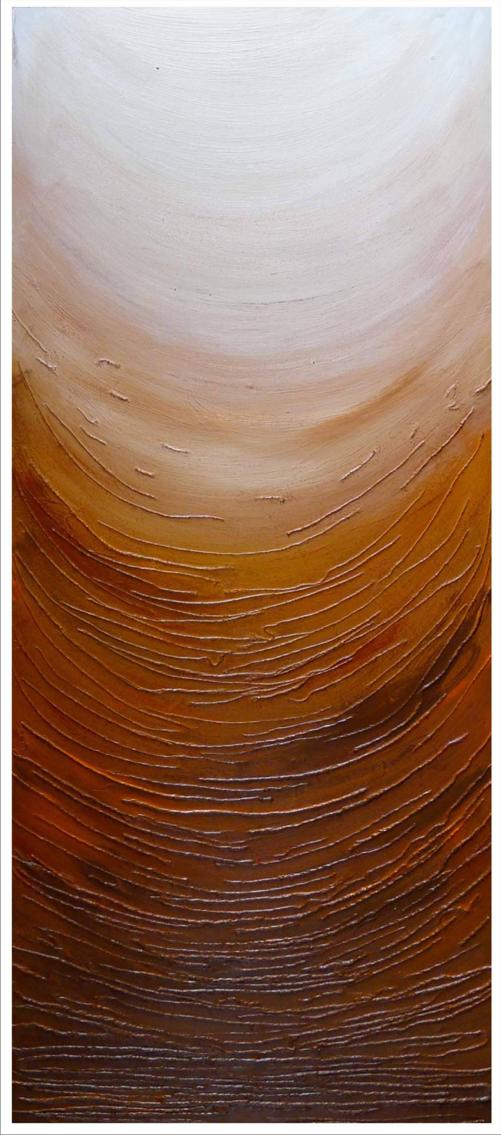 Obraz akrylowy, kolaż - elementy sznurka, podobrazie płyta mdf ,krawędzie zamalowane w tonacji obrazu, powierzchnia fakturalna, zabezpieczony werniksem, sygnowany, przygotowany do powieszenia bez potrzeby ramy. Wymiar 140 cm x 61cm . Idealny do nowoczesnych wnętrz - salonu lub sypialni lub na oryginalny prezent dla bliskiej osoby.