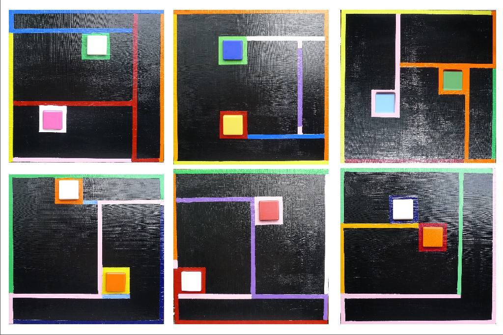 Obraz akrylowy, kolaż, elementy akrylu, kompozycja składa się z sześciu obrazów o wymiarze 40 cm x 40 cm i każdy można powiesić w dowolnej pozycji, podłoże płyta, krawędzie zamalowane w tonacji obrazu, ,werniksowany,sygnowany,przygotowany do powieszenia w dowolnej pozycji,powierzchnia obrazu fakturalna,tonacja czernie i elementy wielokolorowe.Wymiar 120 cm x 80cm. Możliwość dowolnej konfiguracji. Idealny na prezent dla bliskiej osoby.