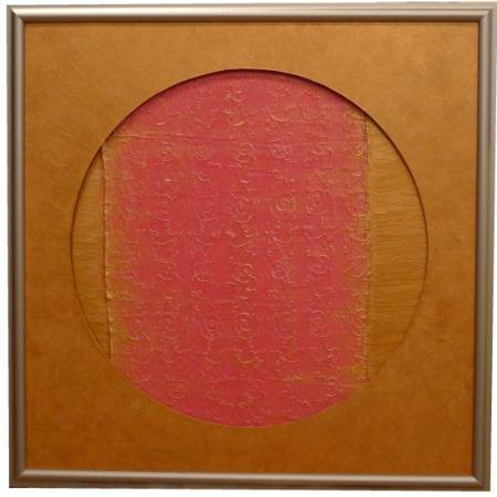 akrylowy,kolaż,werniksowany,podłoże płyta laminowana, rama aluminium anodowane w kolorze satyny , gotowy do powieszenia, TONACJA MIEDZIANO-CZERWONA