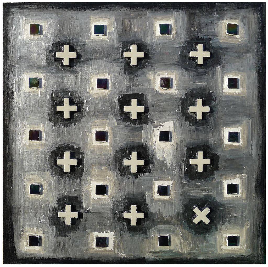 Obraz akrylowy,technika mieszana,elementy mozaiki, podłoże płyta , przygotowany do powieszenia – nafrezowania umożliwiające powieszenie obrazu bez potrzeby ramy i dodatkowych mocowań, boki zamalowane w tonacji obrazu, werniksowany, sygnowany,wymiar 50 cm x 50cm.Możliwość powieszenia w dowolnej pozycji.