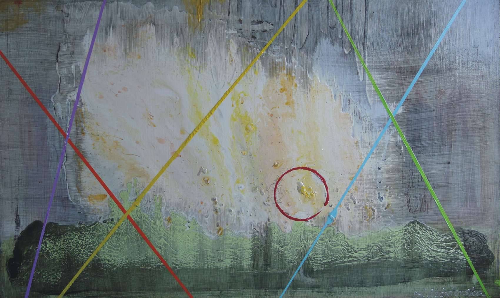 Obraz akrylowy, podobrazie płyta, krawędzie zamalowane w tonacji obrazu, powierzchnia fakturalna, zabezpieczony werniksem, przygotowany do powieszenia – nafrezowania umożliwiające powieszenie obrazu bez potrzeby ramy i dodatkowych mocowań. Wymiar 100cm x 60 cm.