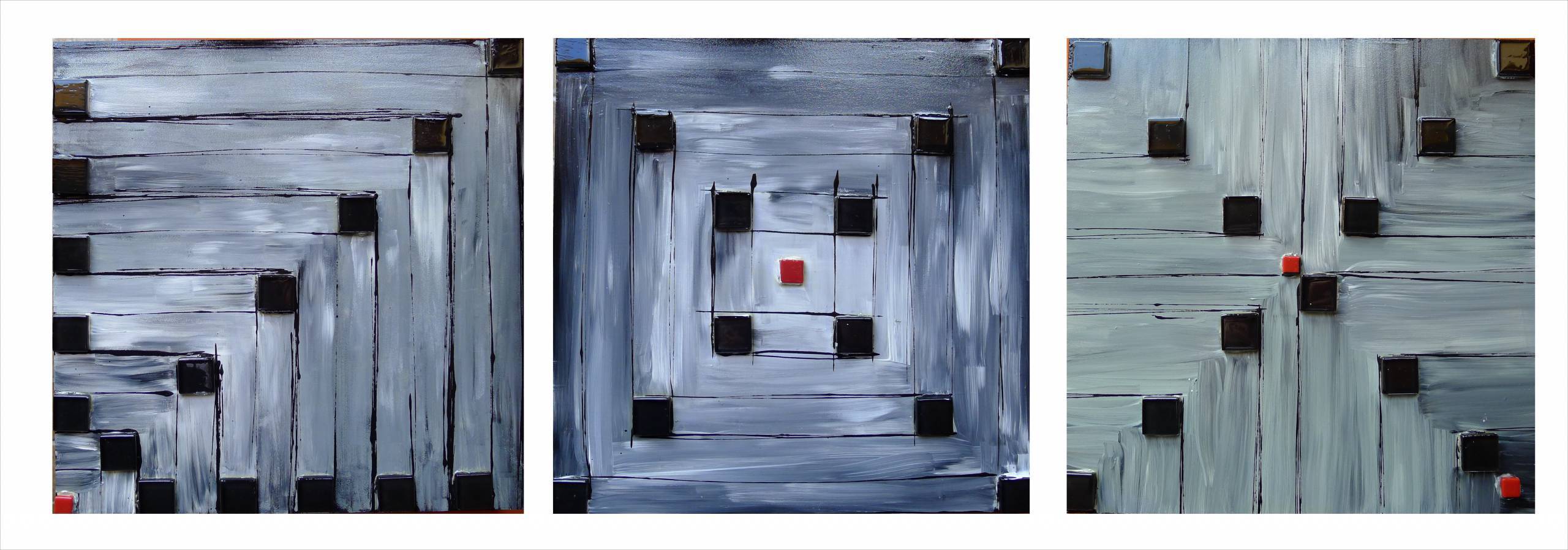 tryptyk składający się z obrazów 30cmx30cm ,możliwość dowolnej konfiguracji, gotowy do powieszenia, elementy szkła i ceramiki