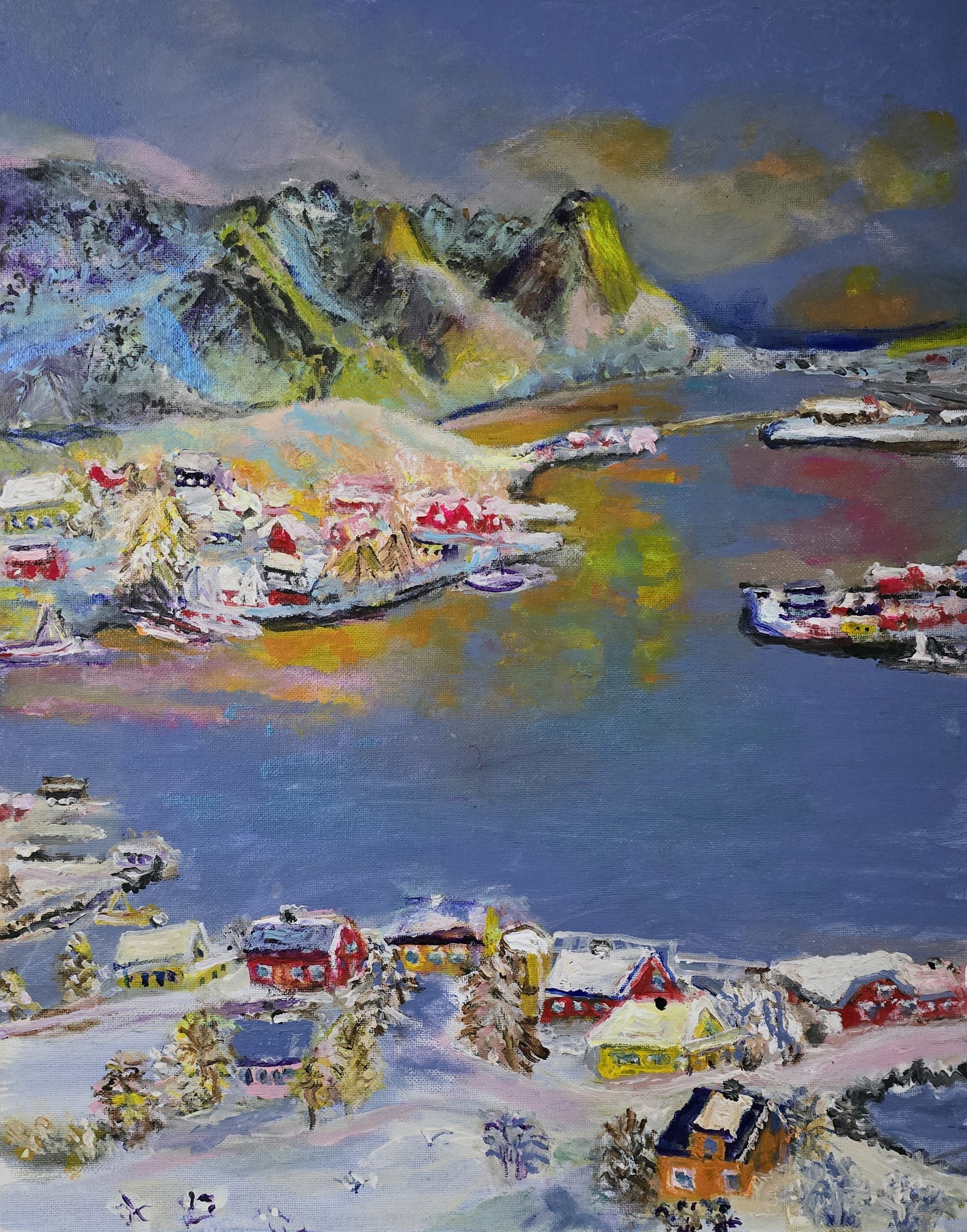 Krystyna Mościszko - Norwegia wyspa Moskenseya,  40x50x2 cm, akryl na płótnie