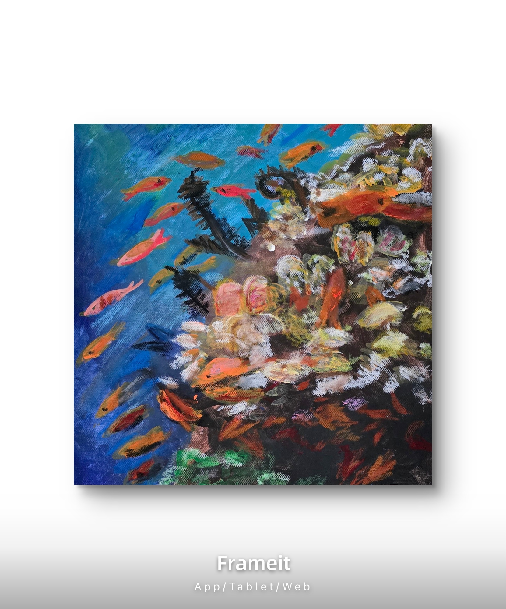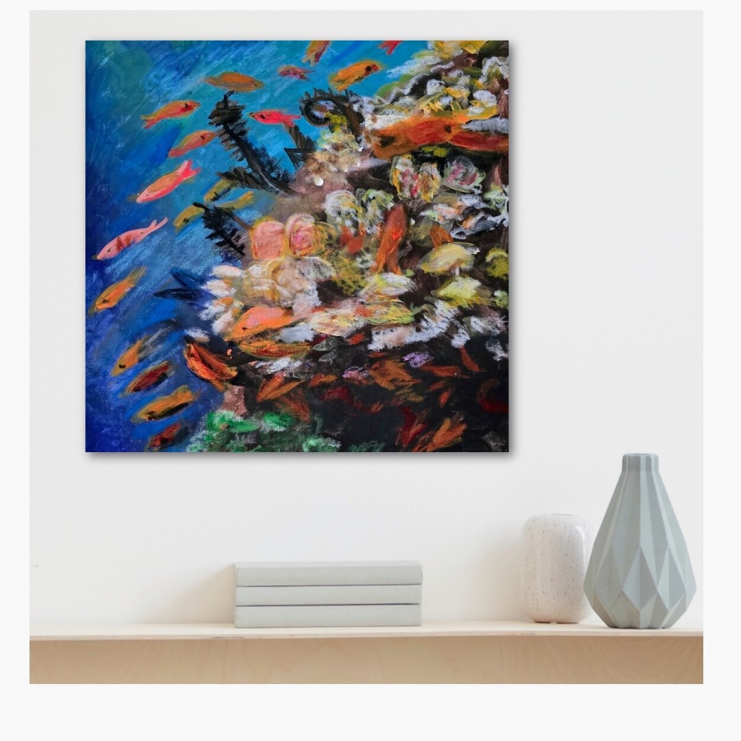 Szanowni Państwo  Obraz akrylowy na płótnie naciągniętym na drewniany blejtram.  Rozmiar obrazu 40x40x1cm.  Boki pomalowane w tym samym kolorze.  Gotowy do zawieszenia.  Technika: akryl,  tempera , werniks końcowy damarowy.  Płótno : bawełna.  Polecam  Krystyna Mościszko