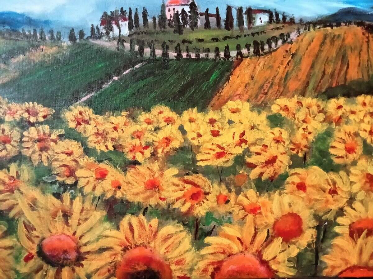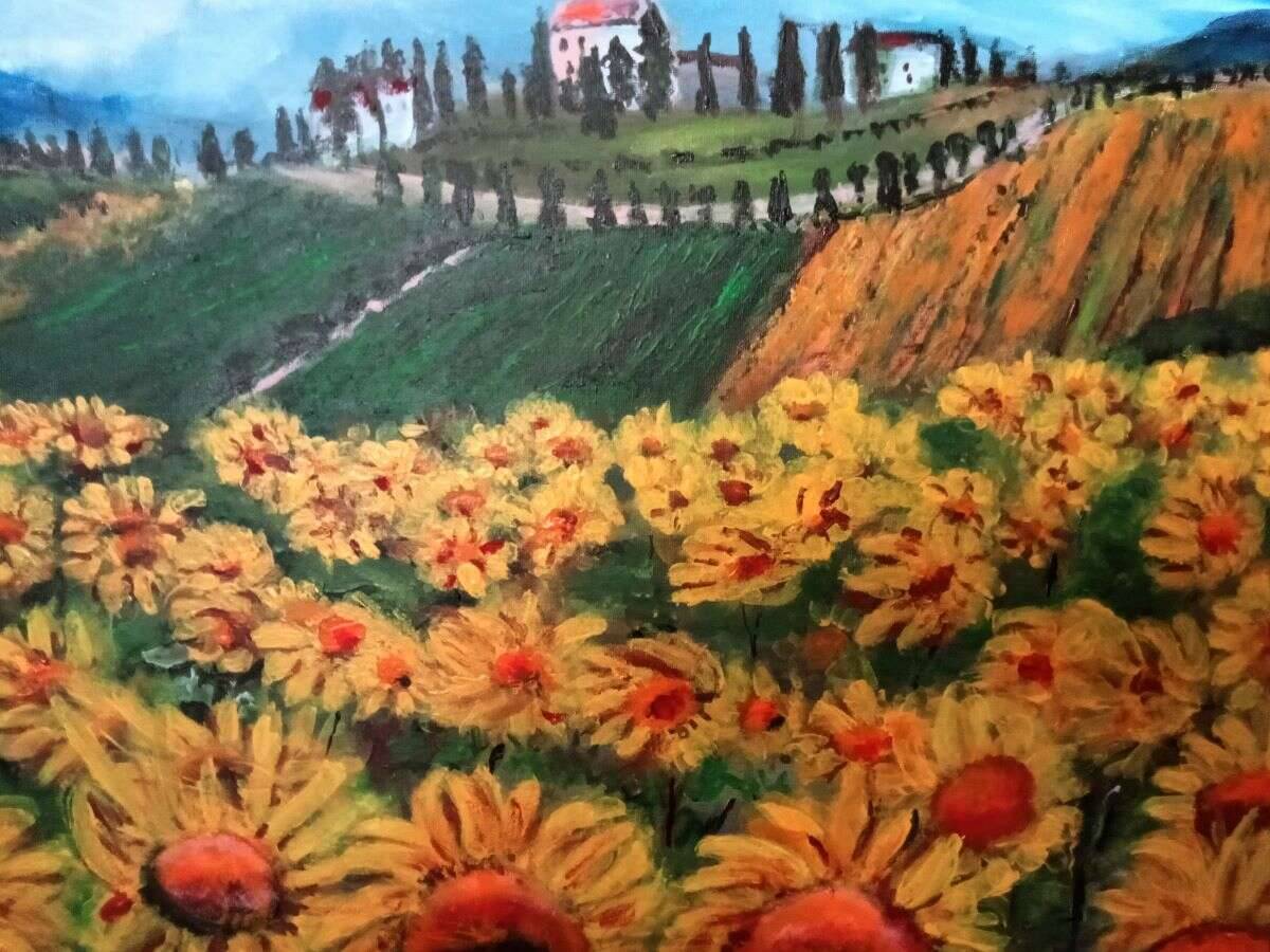 Opis pracy: 60 cm / 40cm/ 2 cm technika : akryl na płótnie naciagniętym na blejtram. Powierzchnia obrazu powleczona impregnatem satynowym z lekkim połyskiem. Boki obrazu zostały pomalowane w kolorystyce obrazu. Obraz jest gotowy do zawieszenia na ścianie. Obraz świetnie nadaje się do niemal kazdego wnętrza .Doskonały na prezent. Obraz pakowany w sposób bezpieczny w twardej tekturze , owinięty w środku specjalną folią zabezpieczającą przed wilgocią.