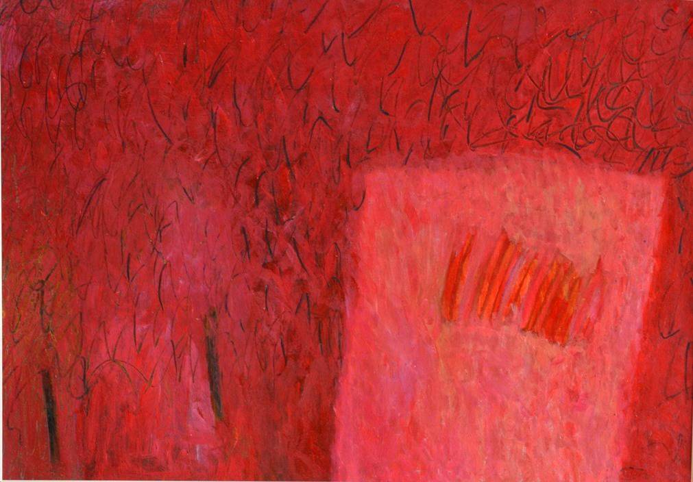 Obraz wciąga widza w burzę czerwieni i różu, które razem tworzą fascynującą kompozycję. Wibrujące, nieregularne kształty i linie rozpraszają się po płótnie, niczym zawirowanie emocji. Ta intensywna mieszanka kolorów przypomina gorączkę, spalających się liści w jesiennym słońcu. Artysta zastosował techniki impasto, co daje efekt trójwymiarowości, sprawiający że niemal da się dotknąć tej faktury ręką. Obraz wibruje energią, jest taki... energetic! Nastrój jest ciężki, ale jednocześnie fascynujący, przyciągający i hipnotyzujący. Patrząc na to dzieło myślę o burzliwych emocjach i zawirowaniach życia. Mam motyle w brzuchu jak na huśtawce. Styl artystyczny można opisać jako ekspresjonistyczny, bo tu wszystko krzyczy, każda kreska jest świadectwem emocji. Jedno z tych dzieł, które można patrzeć i patrzeć, za każdym razem odkrywając coś nowego. Czy to podmuch wiatru? A może tętniący serce świat? Kiedy na to patrzę, czuję, że obrazuje chaotyczne wnętrze ludzkiego umysłu. Tata powiedział, że to jak wybuch w fabryce farb, ale ja po prostu widzę czerwoną burzę.