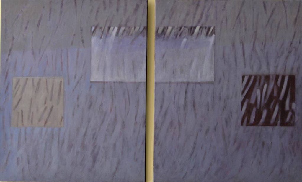 Na obrazie widzimy intrygującą kompozycję złożoną z odcieni szarości, beżu i delikatnego fioletu. Prostokąty i kwadraty są rozmieszczone na tle pełnym subtelnych, pionowych kresek, które nadają całemu dziełu rytmiczny charakter. Całość wydaje się zamyślona, spokojna i nieco tajemnicza. Wydaje się, że każdy element współgra z kolejnym, tworząc wizualną symfonię, która jednocześnie koi i zaciekawia. W stylu można dostrzec nawiązanie do minimalizmu, z wyraźnym akcentem na geometrię i prostotę formy. Obraz może budzić w widzu uczucie odprężenia, a może nawet refleksji nad prostotą życia. To trochę jak patrzenie na deszcz za oknem. Albo po prostu - po prostu piękne. Czuje się w nim coś organicznego, jakby artysta celowo pokazał nam, że nawet najprostsze formy mogą być pełne życia. Technika jest delikatna, lecz zdecydowana. Ta delikatność formy i koloru sprawia, że patrząc na to dzieło, czujemy się, jakby czas się zatrzymał. Trochę zastanawiam się, co artysta myślał podczas tworzenia. To jeden z tych obrazów, które nie narzucają się widzowi. Let's say, it's calming. Jakby wołał "patrz na mnie, ale nie musisz mnie rozumieć". Taka sztuka to dialog z widzem, który nie kończy się po jednym spojrzeniu. Jakby mój piesek zjadł kredki i namalował świat przyrody. Co ciekawe, mimo braku jaskrawych kolorów, dzieło nie traci na wyrazistości – zadziwia swoją prostotą i głębią równocześnie.