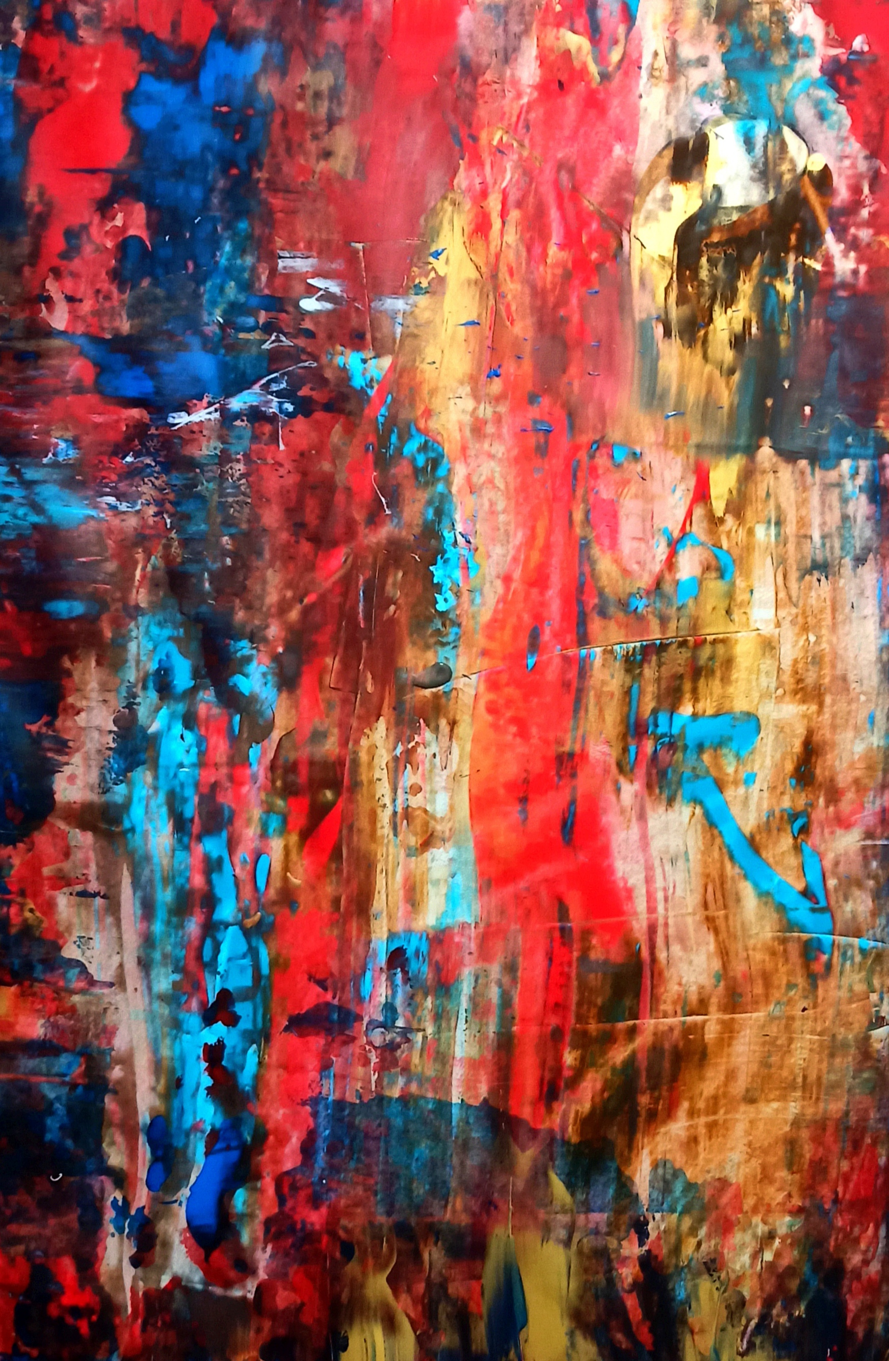 Obraz pełen dynamiki i kolorów, gdzie intensywne czerwienie mieszają się z głębokimi niebieskościami, tworząc istną burzę visuelną. Na pierwszy rzut oka przypomina mi to dżunglę emocji, gdzie chaotyczność nabiera swojej własnej logiki. Kolory tu tańczą, walcząc o dominację na płótnie. Artysta zdaje się czerpać z ekspresjonizmu, gdzie emocje są bardziej istotne niż doskonałość techniczna. I właśnie to jest genialne. Zastosowana technika jest pełna energii. Widać pociągnięcia pędzla wykonane szybkim, pewnym ruchem. Czujesz, jakbyś mógł dotknąć płótna i poczuć energię przekazywaną przez artystę. Nastrój obrazu balansujący na granicy chaosu i harmonii sprawia, że czujesz się trochę niespokojny, ale i zafascynowany. It's captivating! Dla mnie to jak podróż do wnętrza ludzkiego umysłu, gdzie każdy kolor reprezentuje inne emocje. Możesz się zastanawiać, co artysta chciał przekazać, ale prawdziwym mistrzostwem jest pozostawienie tego otwartego dla naszej własnej interpretacji. "O! Tam jest niebieski smok!" powiedziałby może siedmioletni malec, widząc ten obraz. I właśnie o to chodzi. Działa na naszą wyobraźnię, porusza coś głęboko w nas.