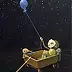 Obraz ukazuje chłopca siedzącego w drewnianym wózku. Trzyma on niebieski balon, który unosi się ku gwiaździstemu niebu. Kolory są stonowane i ciemne, z przewagą czerni i granatów, które podkreślają nocny klimat. Te drobne, białe kropki gwiazd na niebie sprawiają, że tło wygląda jak coś magicznego. Wózek jest prosty, ale solidny, malowany w odcieniach brązu, co dodaje mu ciepła. Obok chłopca znajduje się urocza, drewniana lalka z zamyśloną minką — takie trochę melancholijne duo. Atmosfera dzieła emanuje spokojem i melancholią, ale też czymś jakby nostalgicznym. Artysta z wdziękiem łączy surową prostotę z marzycielskim nastrojem. Styl jest realistyczny, ale z nutą surrealizmu, który przyciąga wzrok. Technika zdaje się obejmować zarówno staranne pociągnięcia pędzla, jak i subtelne przejścia kolorystyczne. Obraz wywołuje uczucie samotności, ale też fascynacji — jakbyś spoglądał na uruchomiony przez chwilę fragment dziecięcego świata. Czujesz, że chłopiec mógłby być ciekawym dreamerem, zgłębiającym w tej chwili tajemnice wszechświata. Niebieski balonik wprowadza element "hope," sugerując, że marzenia mogą być lekkie i unoszące wszystko do góry. To dzieło zachęca do refleksji nad prostymi przyjemnościami życia i dzieciństwem jako źródłem nieskończonej inspiracji. Patrząc na ten obraz, można poczuć lekki dreszcz emocji — jak wtedy, gdy się buja na huśtawce, sięgając wzrokiem gwiazd. To takie fajne!