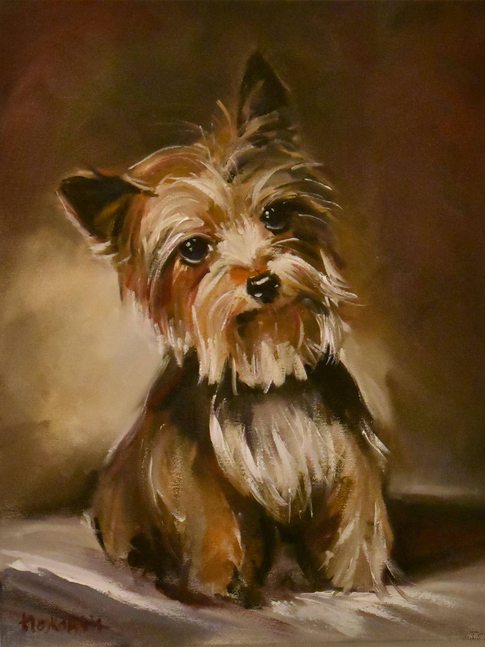 Na obrazie widzimy urocze, malutkiego psa, pięknie uchwyconego w ciepłe, ziemiste barwy. Kompozycja skupia się centralnie na pyszczku tego zwierzaka, który wydaje się patrzeć prosto w oczy widza, niemalże prosząc o głaskanie. Brązy i beże dominują tu, tworząc spokojną, niemal nostalgiczne tło. Atmosfera jest ciepła i pełna delikatności; można by powiedzieć, że obraz wypełnia pokój “coziness”. Pędzel artysty zgrabnie uchwyca detale sierści, z wyraźnymi śladami szybkiego i dynamicznego ruchu, co dodaje żywiołowości i energii. Obraz ten może wywoływać różne emocje; radość, spokój, a może nawet tęsknotę za niewinnością. Styl artystyczny jest impresjonistyczny, z wyraźnymi, ale miękkimi pociągnięciami pędzla. To tak, jakby artysta chciał uchwycić nie chwilę, ale esencję tego słodkiego stworzenia. Patrząc na ten obraz, wraca wspomnienie pierwszego spotkania z własnym zwierzakiem. Taki puszysty i śmieszny. A jak się przyjrzymy, to serce mięknie na widok tego spojrzenia. Wow, ten obraz po prostu przytula!