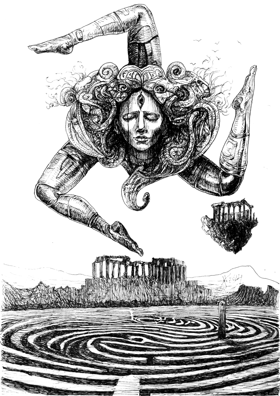 Sycylijskie mity z labiryntem w tle *rysunek piórkiem