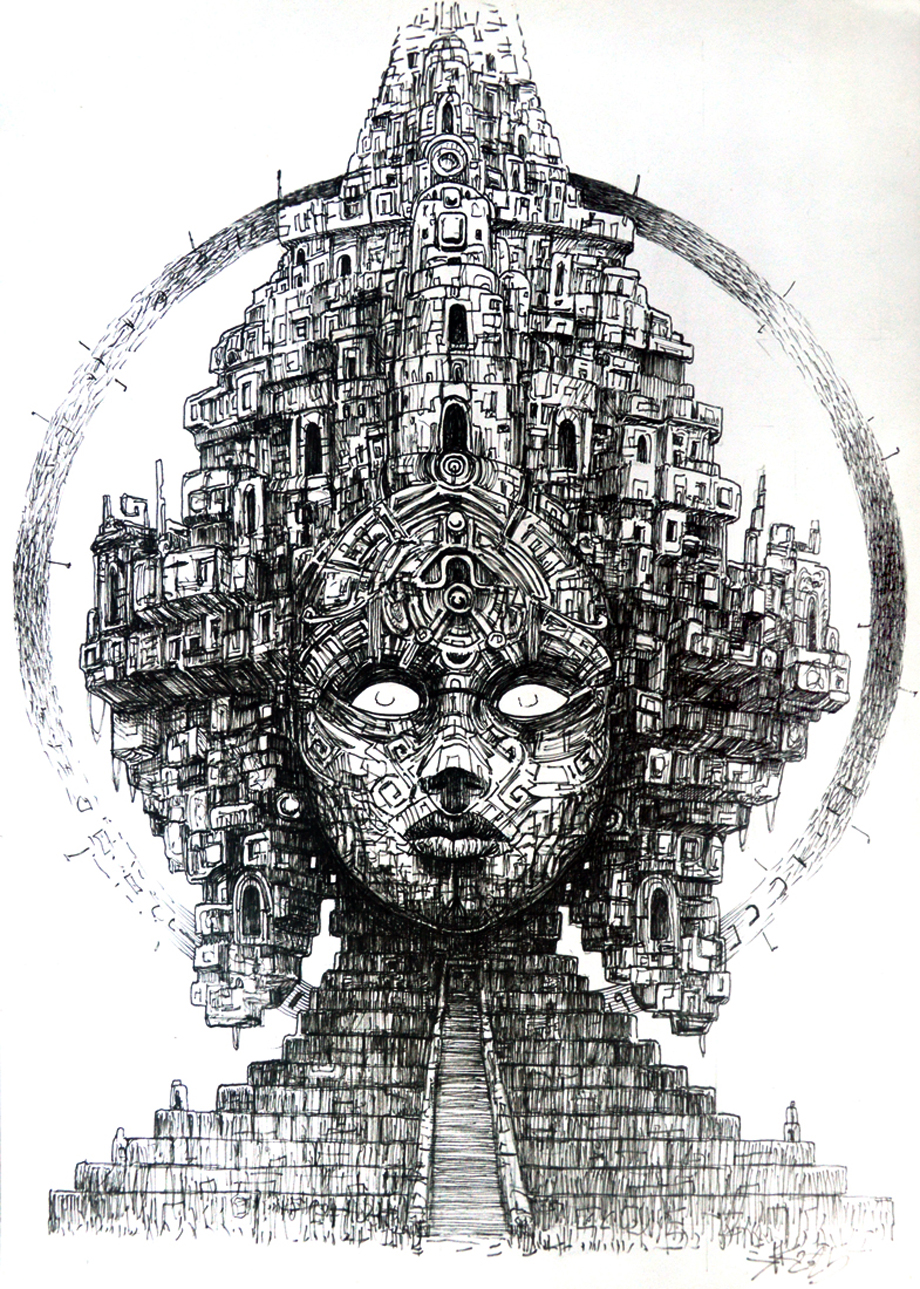 Krzysztof Krawiec - Wizje ze świata Azteckiej Królowej  *rysunek piórkiem