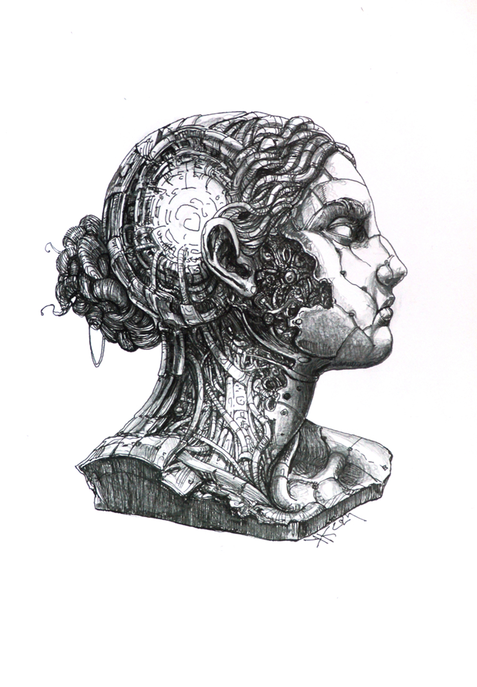 Krzysztof Krawiec - Głowa Antyczna  *rysunek piórkiem