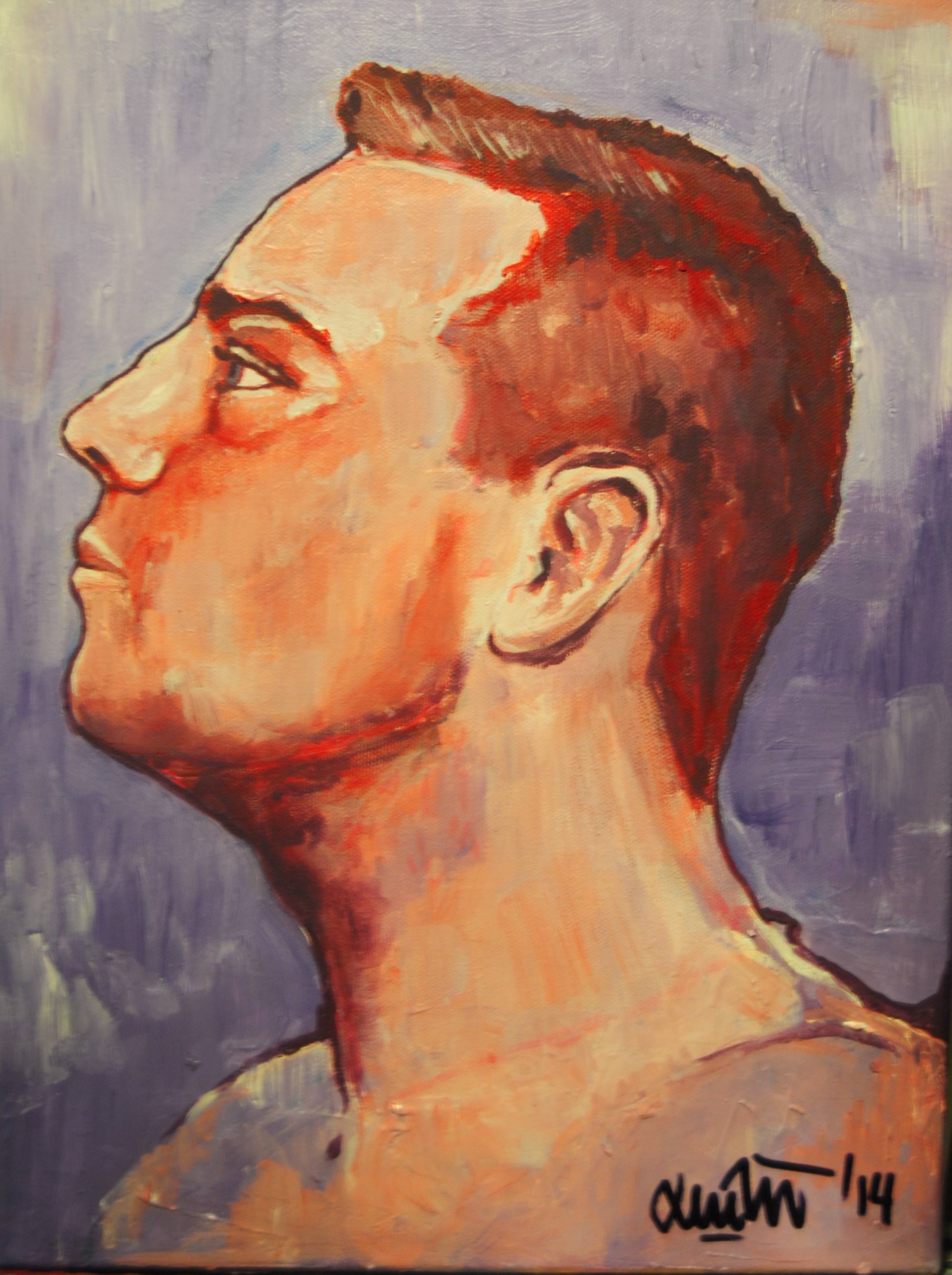 Na obrazie widzimy profil mężczyzny utrzymany w ciepłej tonacji barw. Dominują odcienie czerwieni i brązu, które kontrastują z chłodnym, lawendowym tłem. Twarz mężczyzny jest pełna wyrazu, a spojrzenie skierowane ku górze dodaje całej scenie pewnej tajemniczości. Artysta zastosował technikę impasto, co widać w grubych pociągnięciach pędzla. Dzięki temu, obraz ma teksturę, która wręcz zaprasza, by jej dotknąć. Atmosfera jest jednocześnie spokojna i pełna napięcia. Jakby coś istotnego miało się zaraz wydarzyć. Styl obrazu przypomina ekspresjonizm, z silnym naciskiem na emocje wyrażone poprzez kolor. To prawdziwe "wow" dla oka. Emocje, które wywołuje ten obraz, mogą być różne – od zadumy, przez zachwyt, po delikatne poczucie niepokoju. Ale co tak naprawdę myśli ten mężczyzna? Może marzy o przygodach? A może gapi się na kropki na suficie? Kolorystyka obrazu przywodzi też na myśl zmierzch, czas magiczny i pełen refleksji. Dla siedmiolatka, obraz ten mógłby być inspiracją do myśli: "Ciekawe, czy on patrzy na samoloty". A angielskie słowo "gaze" idealnie oddaje intensywność spojrzenia postaci. Obraz ten na pewno zmusza do myślenia – i to jest właśnie jego największa siła.