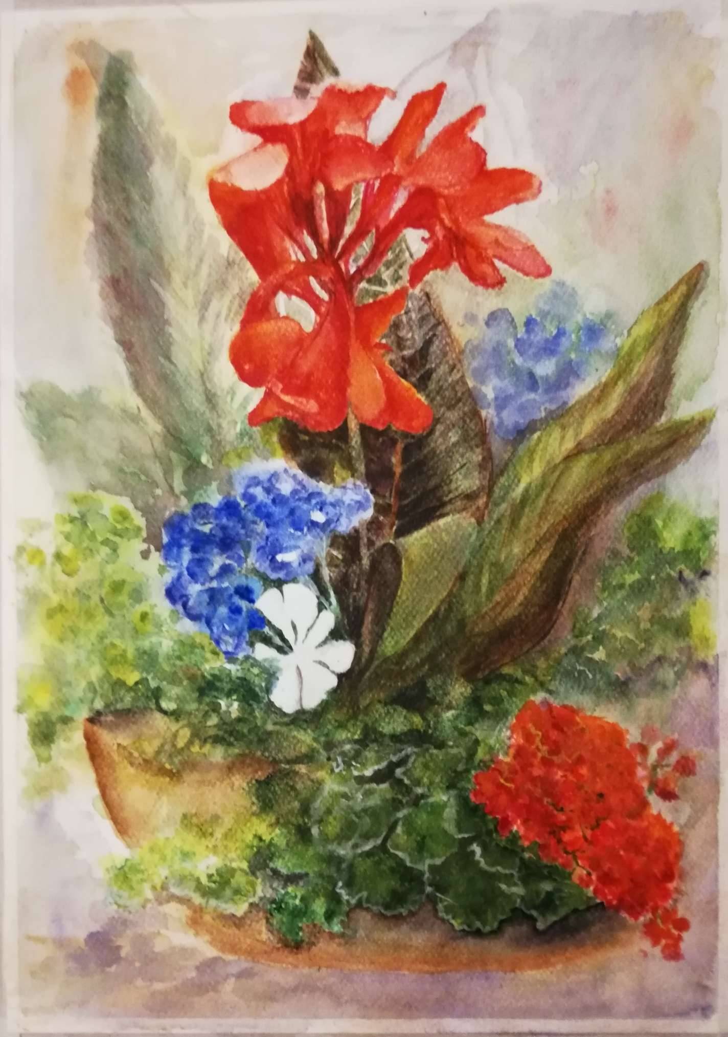 Przemijające piekno wyniosłego kwiatu zaklęte w akwareli na papierze oprawione w antyramę i passepartou.