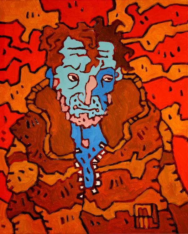 Obraz emanuje żywiołowymi kolorami i dynamicznymi kształtami, które od razu przyciągają wzrok. Dominują tu głębokie odcienie pomarańczowego, czerwieni i niebieskiego, które przeplatają się w niespokojnym rytmie. Centralna postać wydaje się nieco zagubiona, a jej twarz wyraża mieszaninę smutku i zamyślenia. Tło jest jakby w ruchu, pełne zmarszczek i fal, co dodaje dziełu energii i dynamizmu. Atmosfera obrazu jest pełna napięcia, jakby coś miało się wydarzyć. Czujemy niepokój i ekscytację zarazem. Styl artystyczny przypomina nieco ekspresjonizm, z grubymi pociągnięciami pędzla i wyraźnymi konturami, które definiują kształty. Artysta używa techniki pełnej kontrastu, co wzmacnia dramatyczny efekt. Obraz może wywoływać u odbiorcy różne emocje. Może nasuwać myśli o samotności, ale także o wewnętrznej sile. Kiedy patrzę na ten obraz, myślę sobie: "Wow, jaka to dziwna i pełna wyrazu twarz!" Dzieło jest zarazem fascinating ale i niepokojące. Tak, jakby artysta próbował pokazać coś więcej niż tylko to, co widać na pierwszy rzut oka. Może to być opowieść o zmaganiach z codziennością lub głębsze spojrzenie na wewnętrzny świat człowieka. A kolory są super ekstra fajowe!