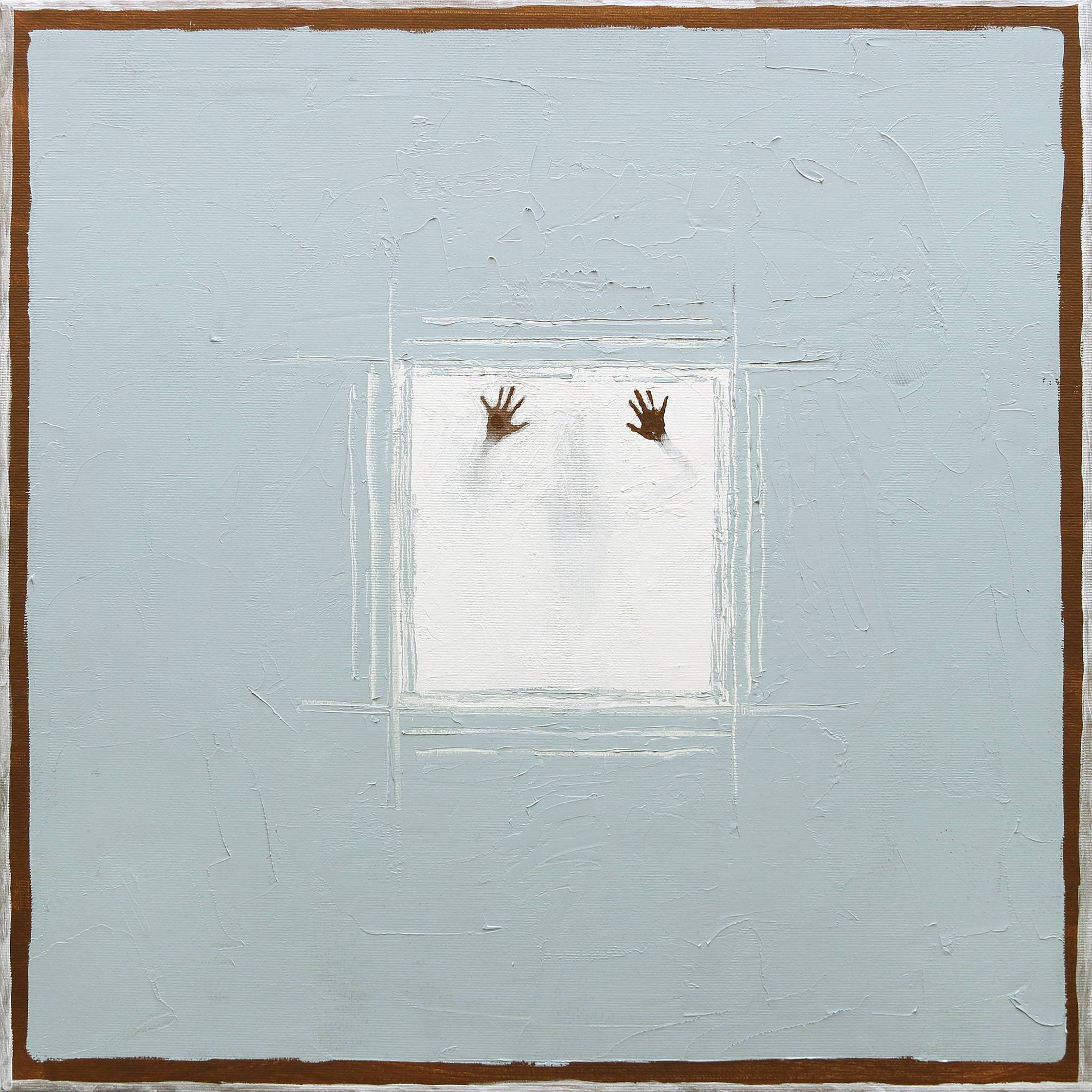 Na obrazie widać jaśniutki kwadrat na tle bladoniebieskiego płótna, jakby przesłonięte mgłą. Na jego środku delikatnie wyciągają się dwie małe, dziecięce dłonie. Barwy są stonowane, co nadaje całości nieco tajemniczy, melancholijny vibe. Całe płótno odgradza cienka brązowa ramka, która ujęła całość w klasyczne ramy. Nastrój obrazu jest intrygujący. Czujesz się nieco zagubiony, próbując zrozumieć, co artysta chciał przekazać poprzez ten minimalistyczny styl. Technika, jaką posłużył się artysta, to subtelne pociągnięcia pędzlem, które tworzą gładką, lekko teksturowaną powierzchnię. Wykorzystując minimalistyczną kompozycję, artysta zmusza odbiorcę do refleksji. Moje skojarzenia? Może to metafora dzieciństwa odsuniętego za mgłę wspomnień. Ten obraz sprawia, że czujesz tęsknotę i niepewność. Może też wywoływać chęć ochrony tego, co delikatne i niewinne. W końcu każda interpretacja jest jak osobista podróż. Patrząc na ten obraz, pomyślałem, że to może być "window to the soul", gdzie nasze wspomnienia błądzą jak duszki. A synek powiedziałby: "Rączki za szybą, jak u nas w kuchni!" Rozbrajająca prostota dziecka, prawda? To przypomina mi dziecięcą radość i beztroskę. Tak czy inaczej, obraz jest niezwykle uroczy i prowokuje do głębszych przemyśleń.