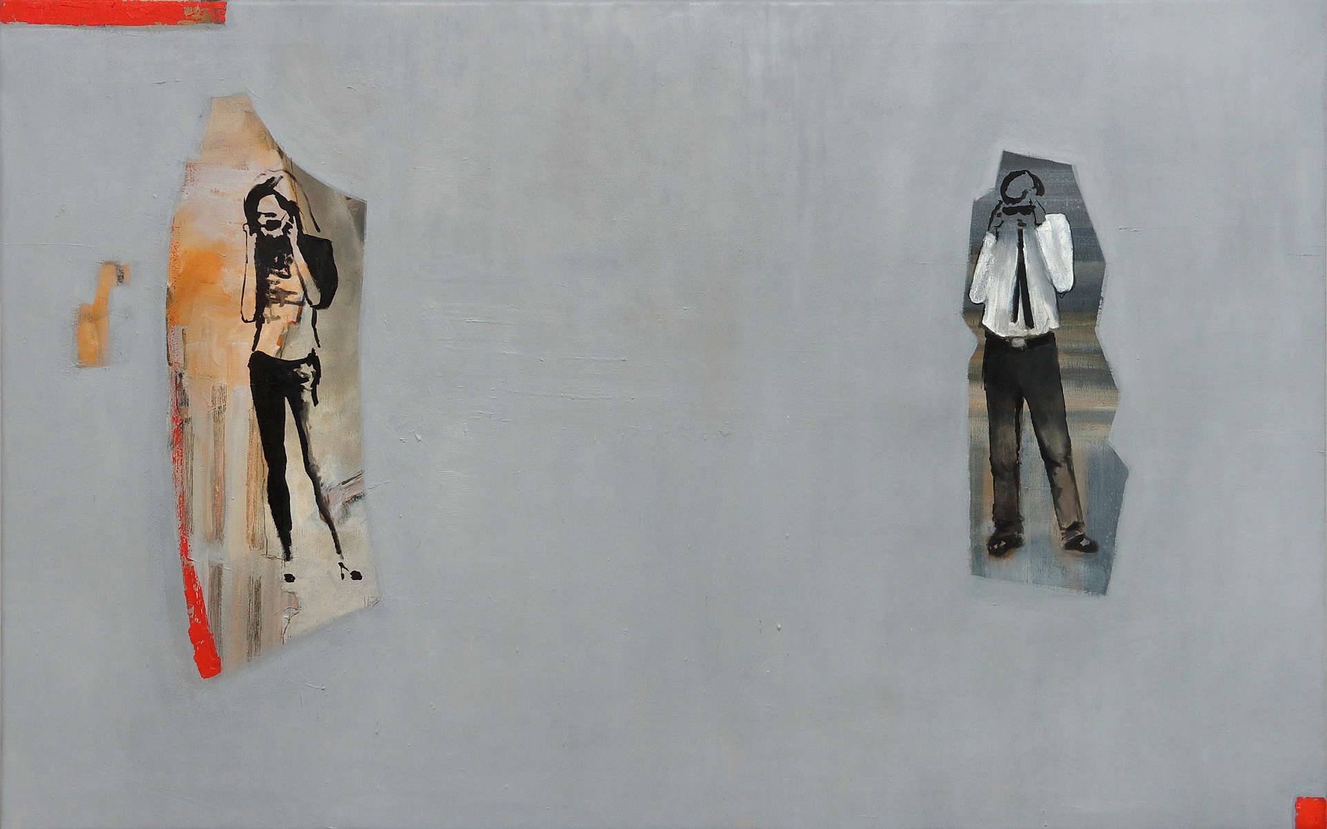 Obraz ten to istny majstersztyk minimalizmu. Dominują na nim stonowane barwy szarości, kontrastujące z intensywnymi plamami pomarańczu i czerwieni. Kompozycja jest prosta, skupia się na dwóch sylwetkach umieszczonych po przeciwległych stronach płótna. Każda z postaci wydaje się zatopiona w swoich myślach. Tło, choć szare, zdaje się być dynamicznym przestrzennym wypełnieniem, podkreślającym wewnętrzny świat przedstawionych osób. Atmosfera jest tajemnicza, przytłumiona, niemalże melancholijna. Styl artystyczny, jakiego użył twórca, łączy w sobie elementy abstrakcji z realistycznymi detalami postaci. Można wyczuć, że artysta eksperymentuje z formą i przestrzenią, pozostawiając wiele miejsca na własne interpretacje. Technika mieszania kolorów i faktur dodaje obrazowi głębi i złożoności. Obraz może wywoływać w różnych osobach odmienne emocje. Ja osobiście poczułem pewną nostalgię i ciekawość. Ciekawe, co myślą? Może to chwila zatrzymania się w codziennym zgiełku. Albo po prostu kamera caught them off guard. Takie dzieło skłania do refleksji nad własnym miejscem w świecie. Wywołuje też nutkę niepokoju, jakby coś niepokojącego czaiło się poza kadrem. To jak tajemnicza zagadka czekająca na odkrycie.